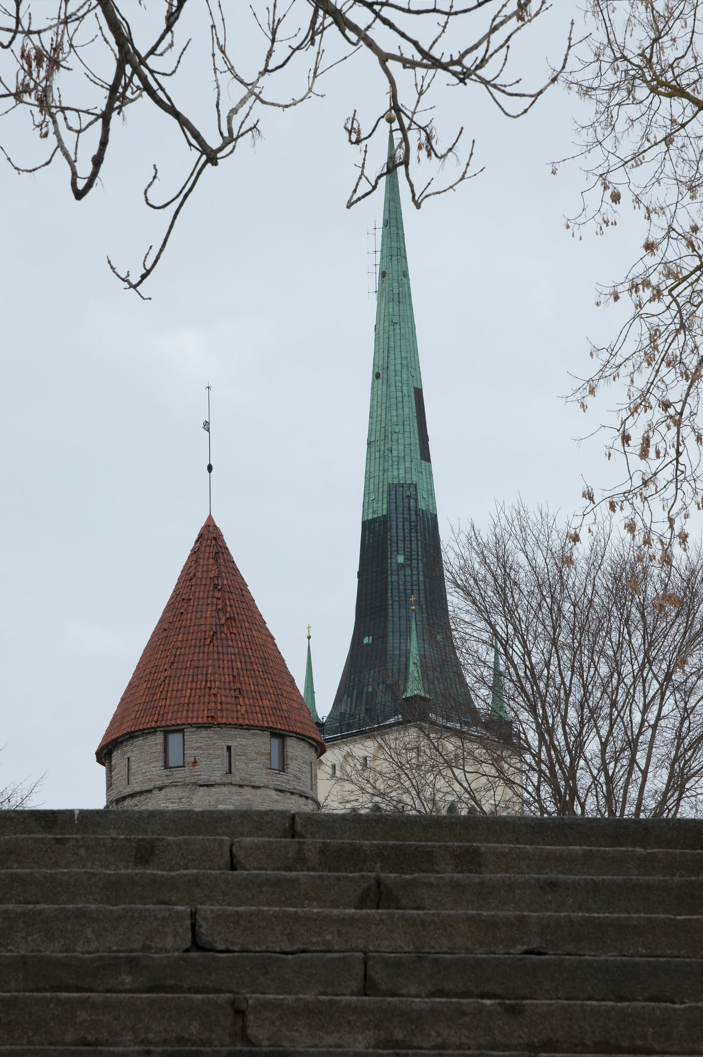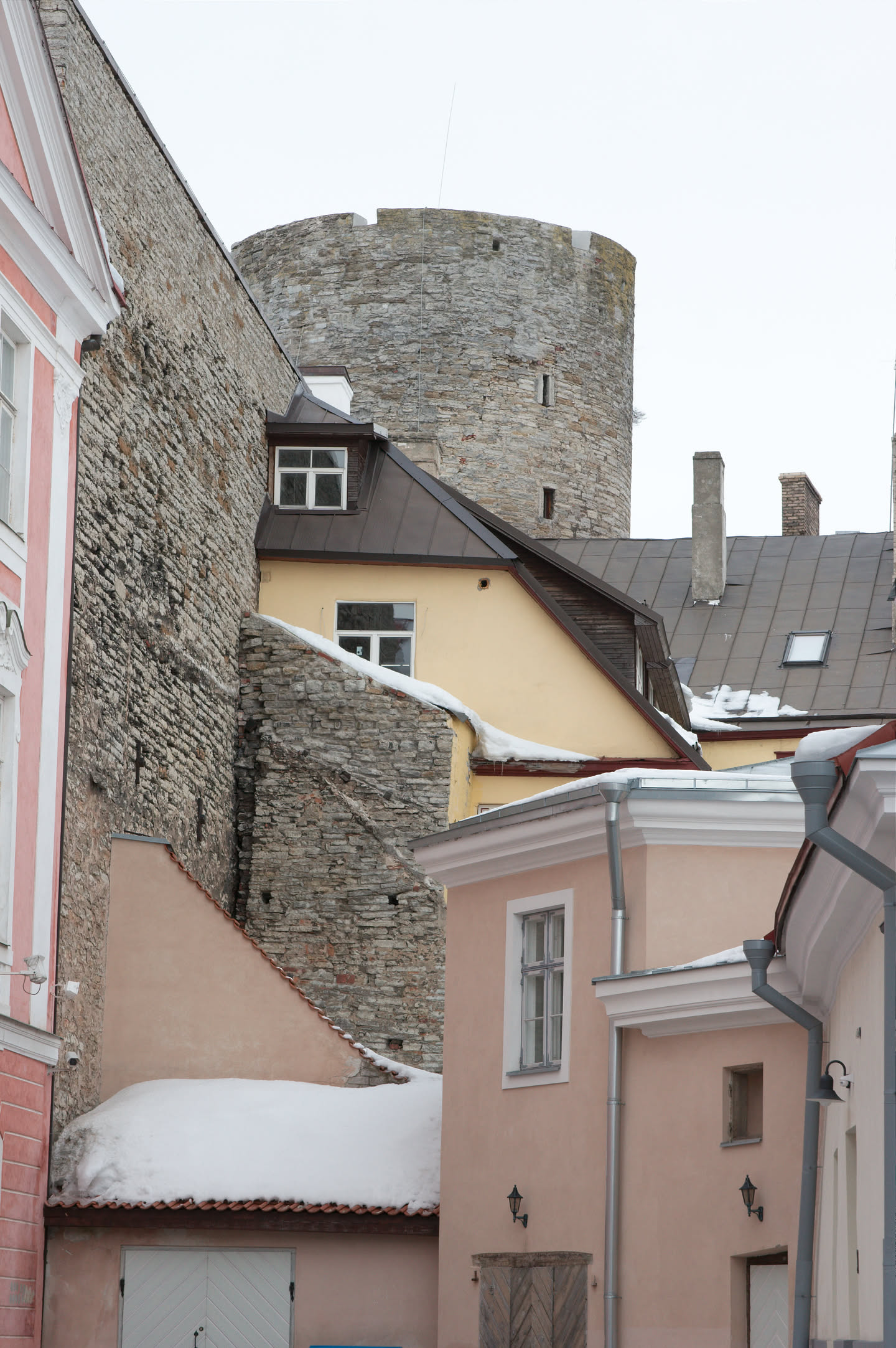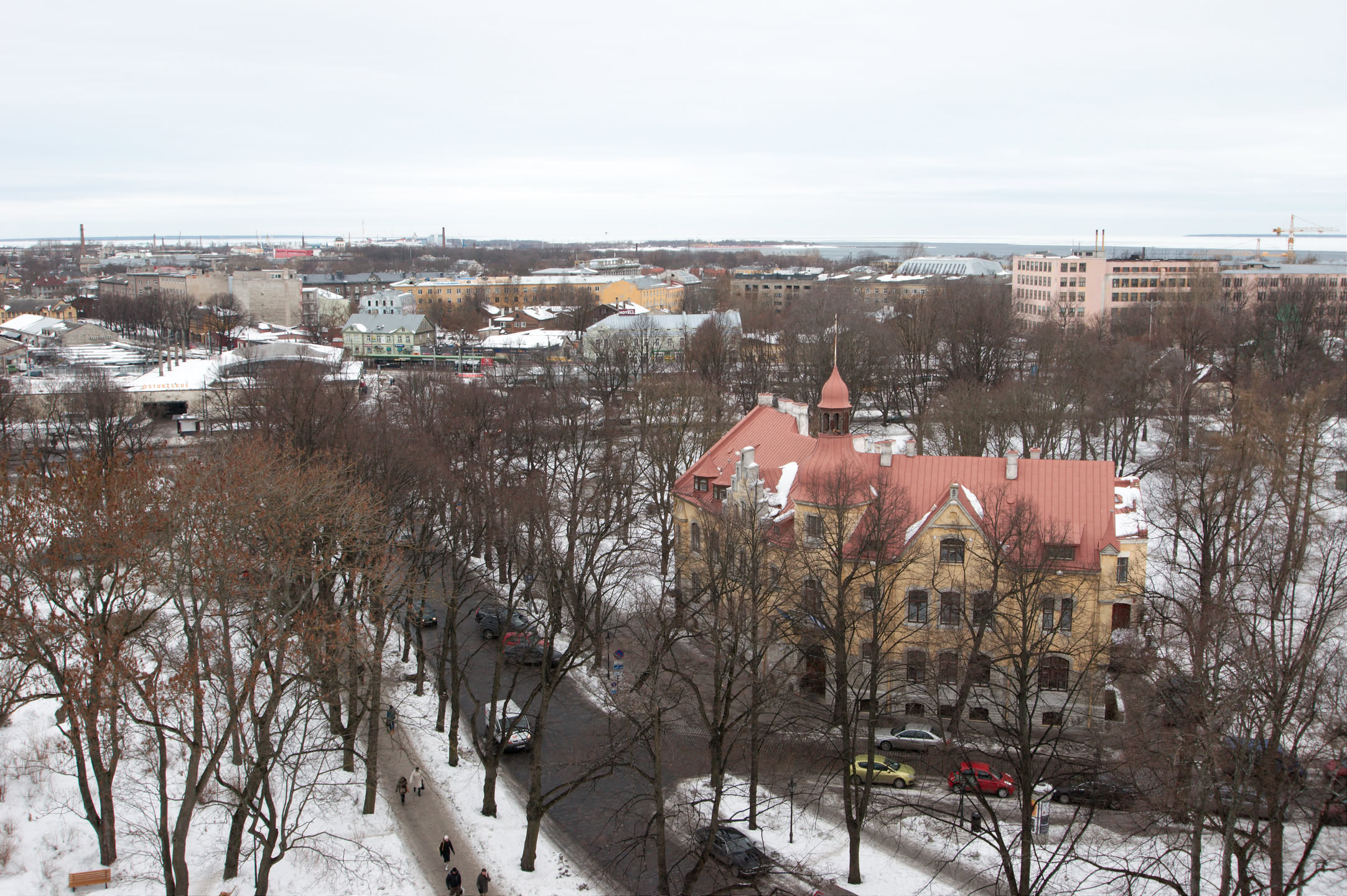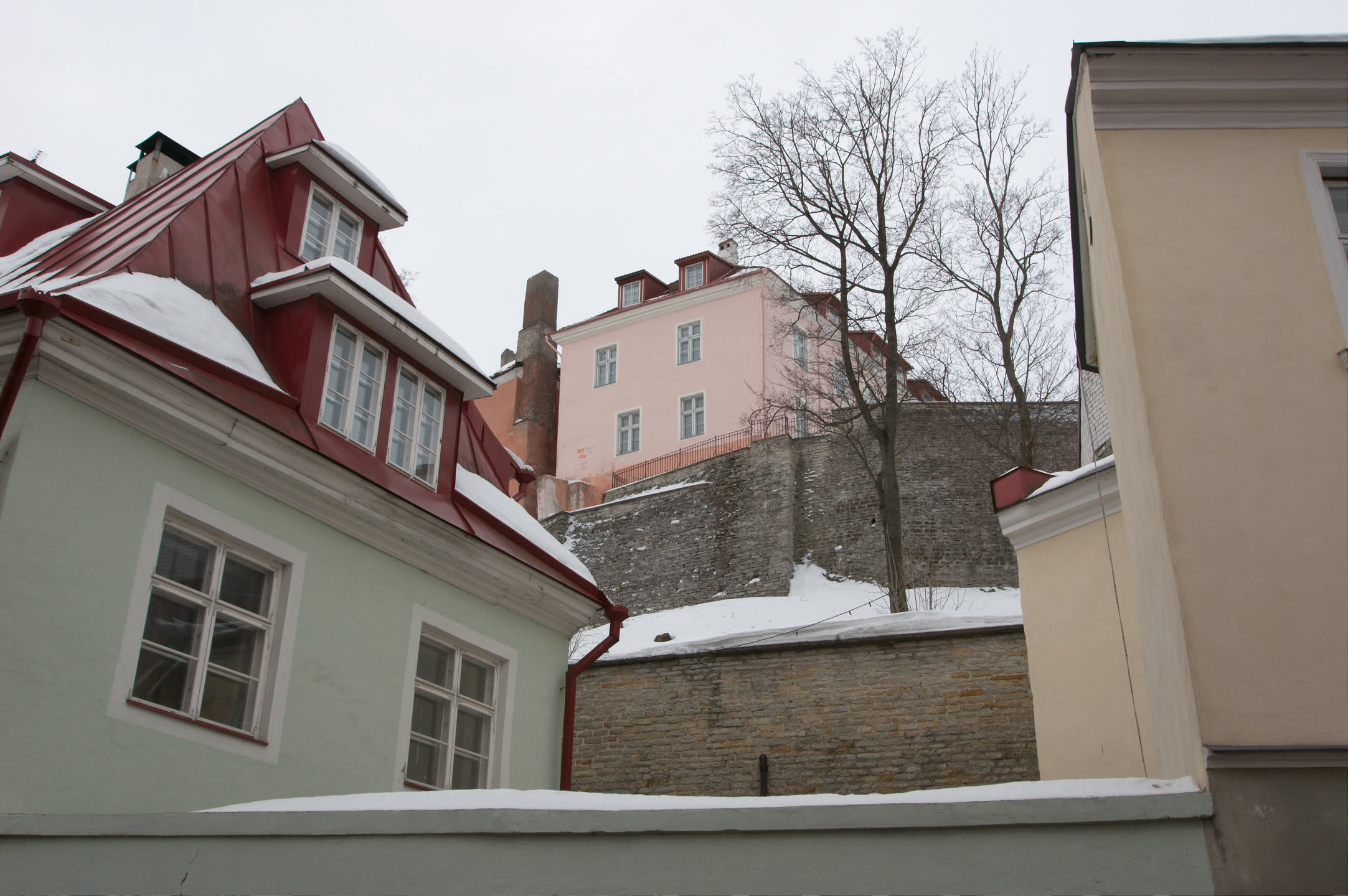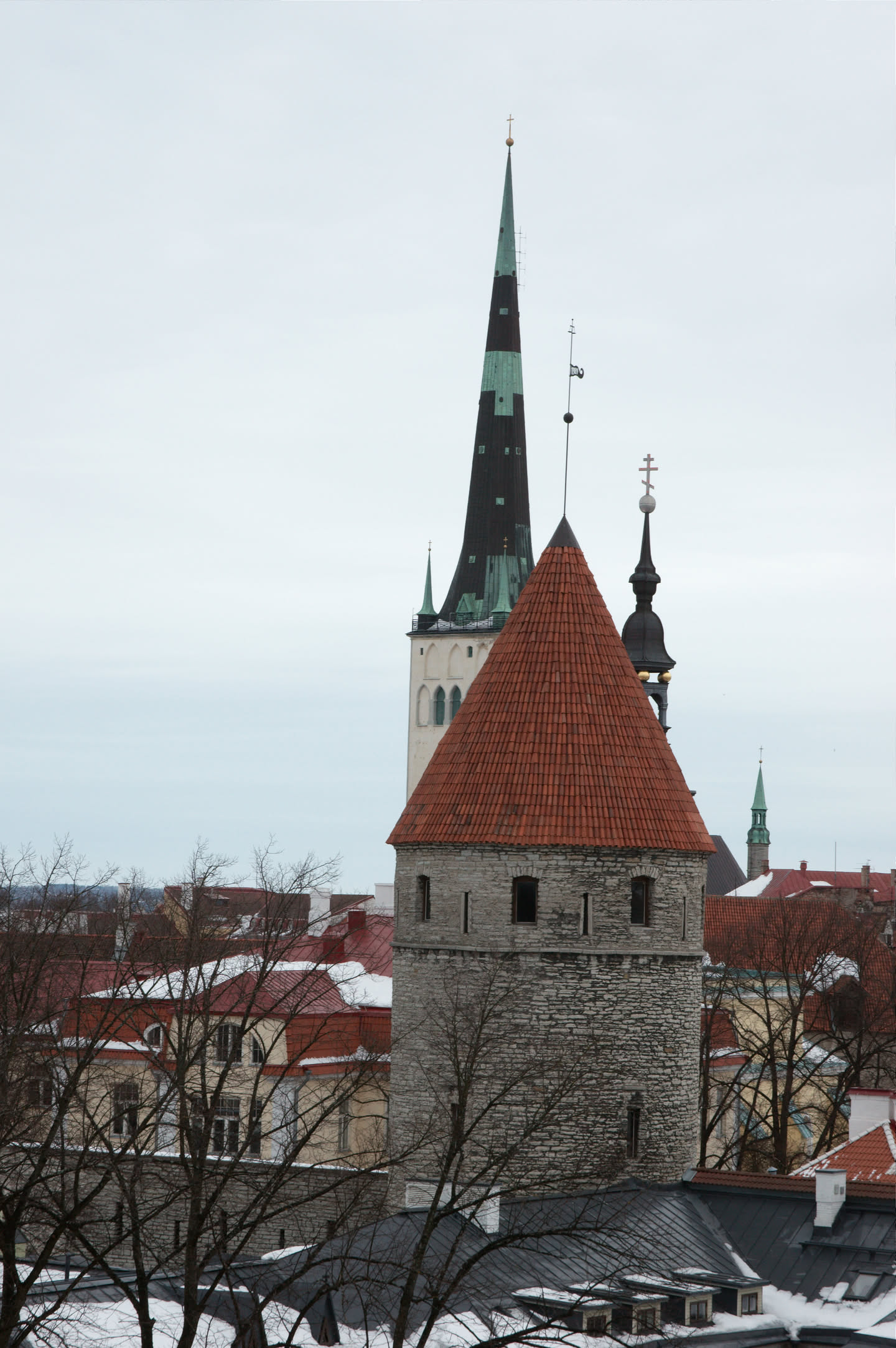 Terwijl Vincent ’s ochtends dus op stap is pak ik mijn fototoestel en maak ik een wandeling. Ons hotel staat in het oude gedeelte van de stad, een prachtig gebied met mooi gebouwde en gekleurde huizen; vlakbij is een heuvel, daar loop ik naar toe en via een stel trappen kom ik op de heuvel terecht. Het uitzicht is prachtig, over de oude stad heen zie je de Oostzee liggen. De gebouwen op de heuvel zijn al even mooi.