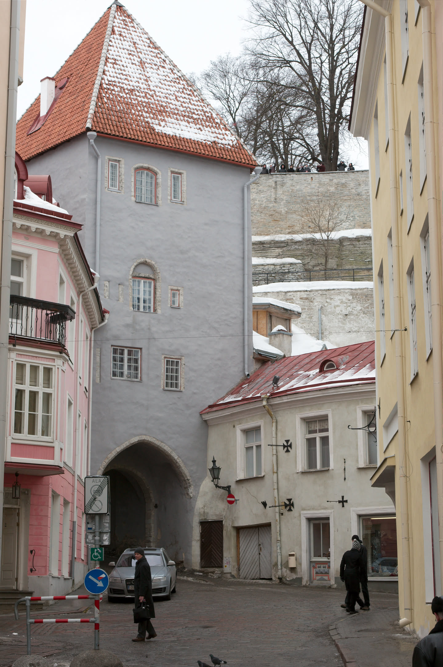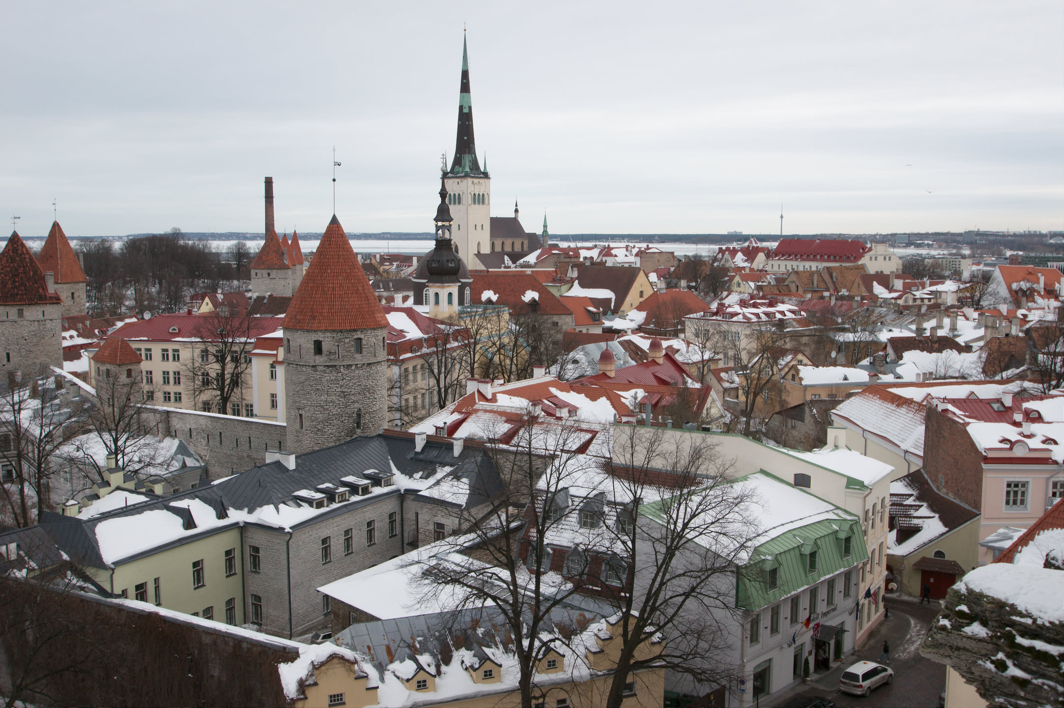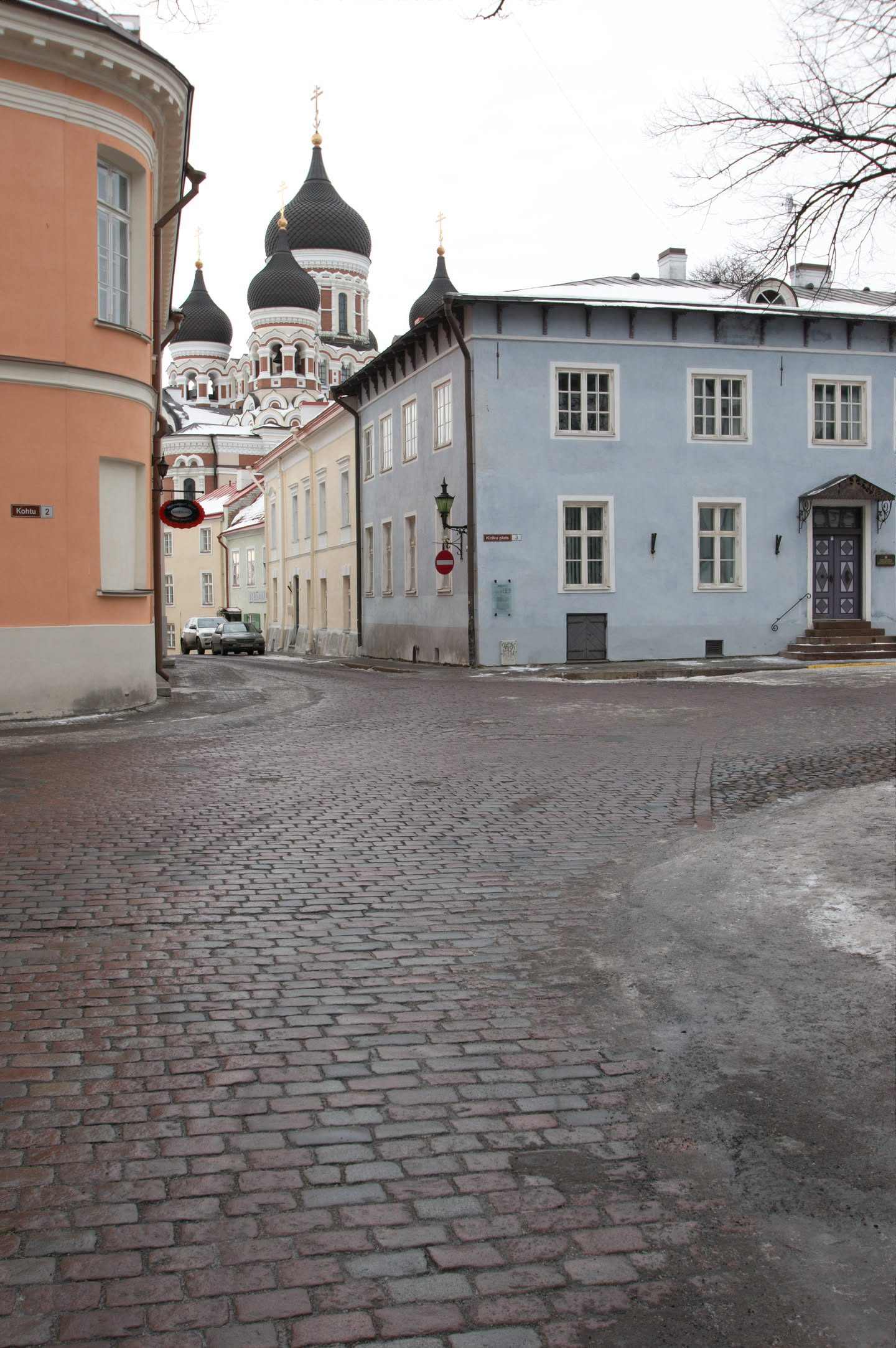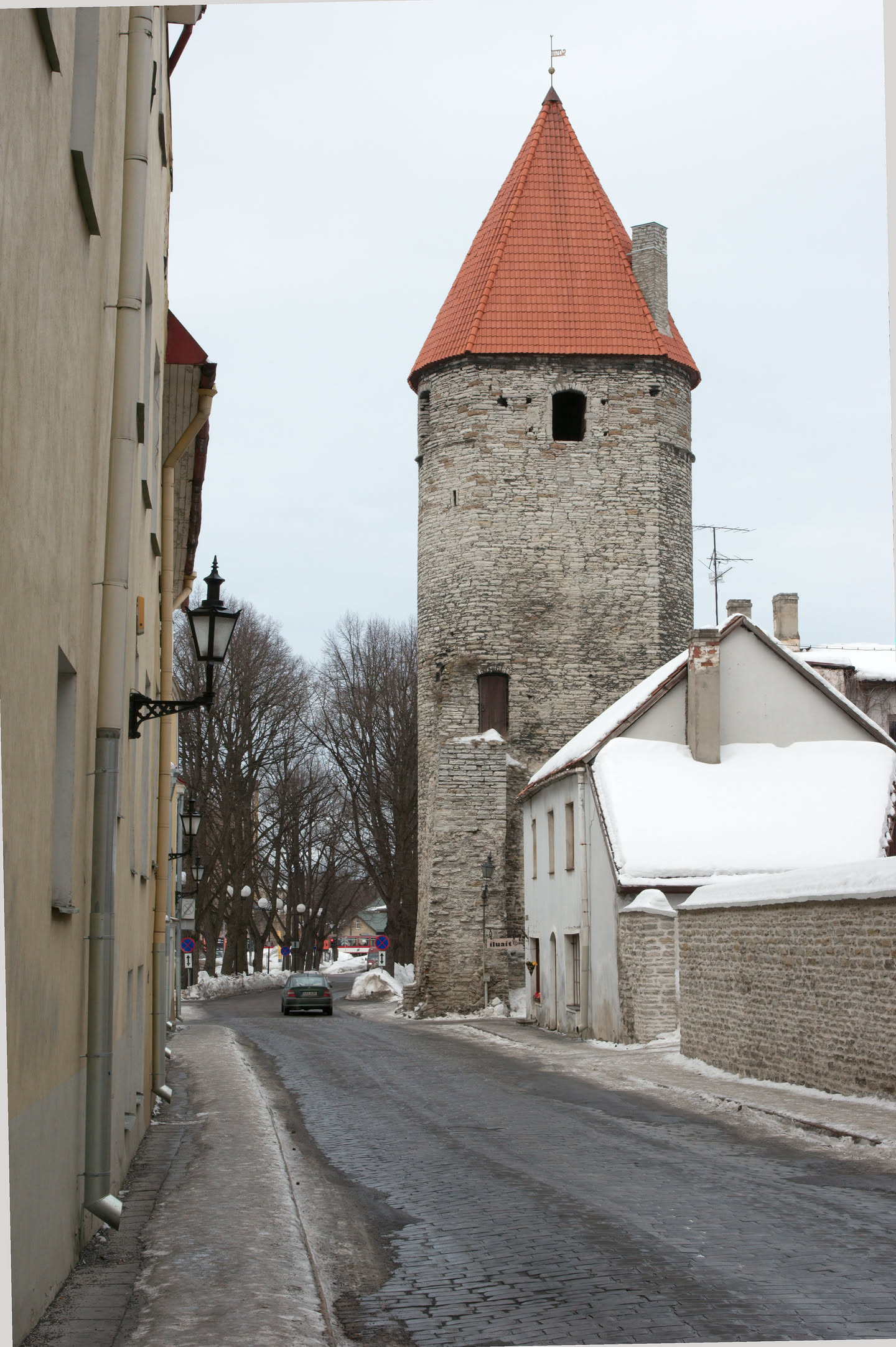 Terwijl Vincent ’s ochtends dus op stap is pak ik mijn fototoestel en maak ik een wandeling. Ons hotel staat in het oude gedeelte van de stad, een prachtig gebied met mooi gebouwde en gekleurde huizen; vlakbij is een heuvel, daar loop ik naar toe en via een stel trappen kom ik op de heuvel terecht. Het uitzicht is prachtig, over de oude stad heen zie je de Oostzee liggen. De gebouwen op de heuvel zijn al even mooi.