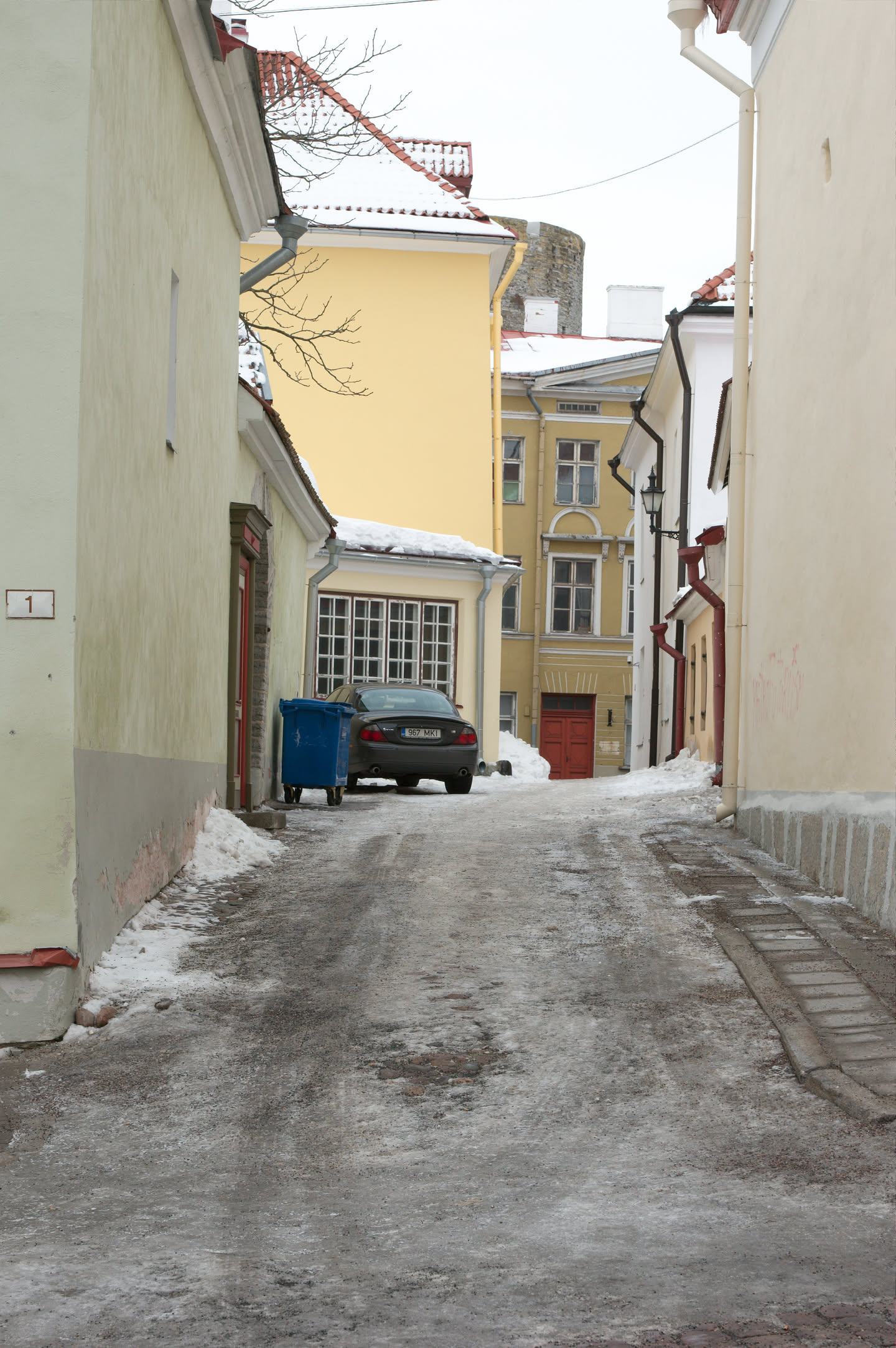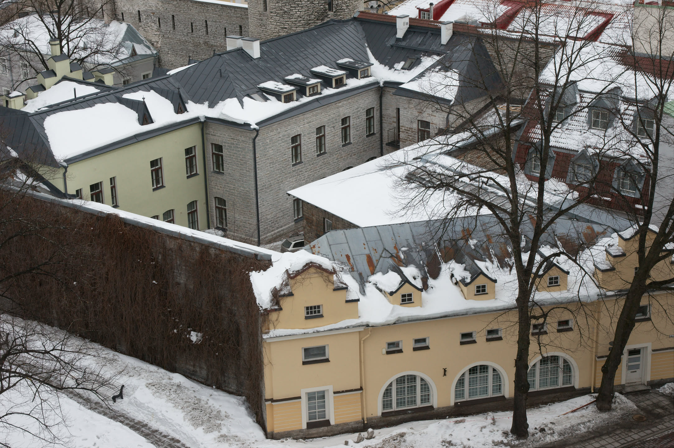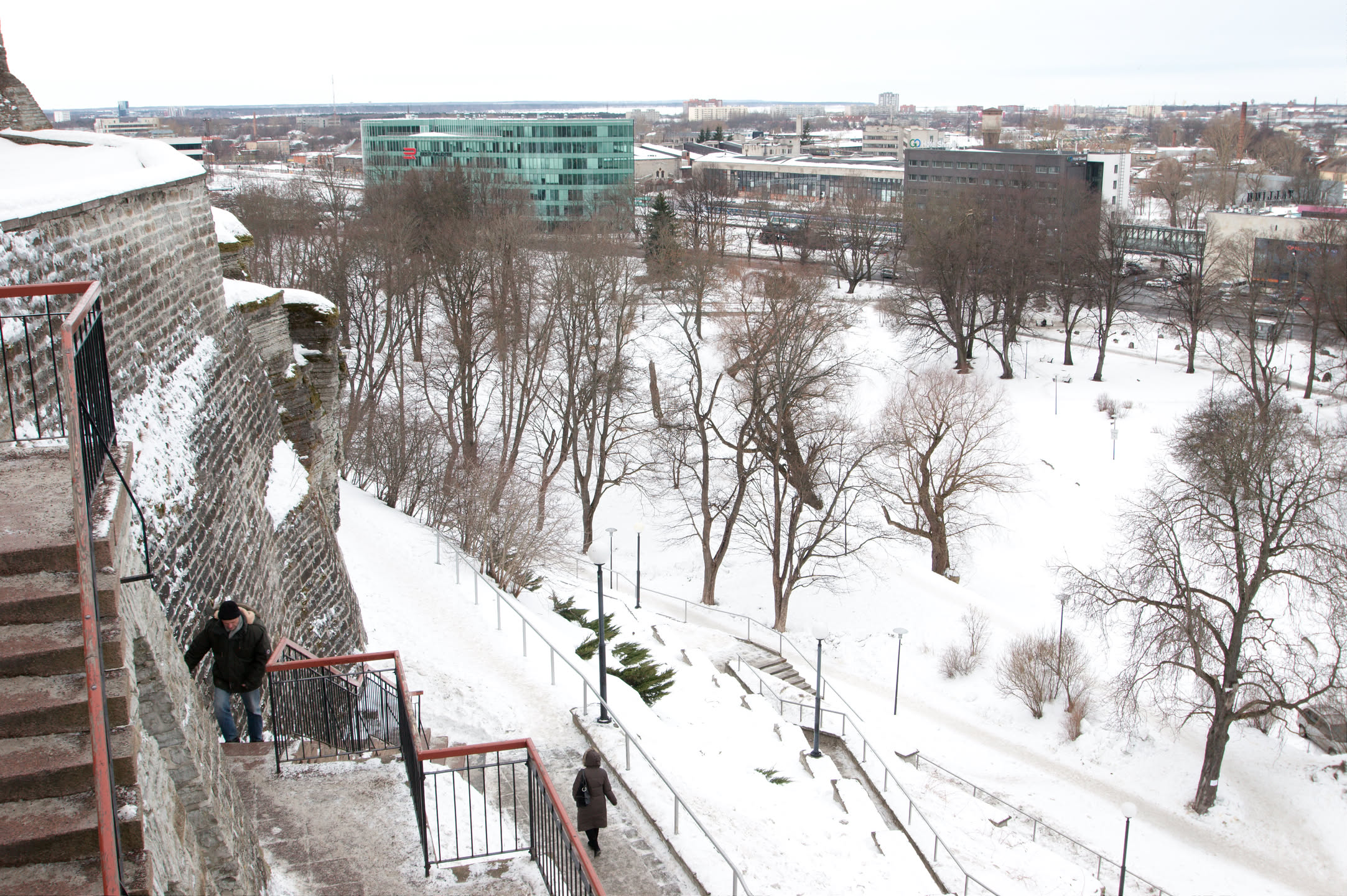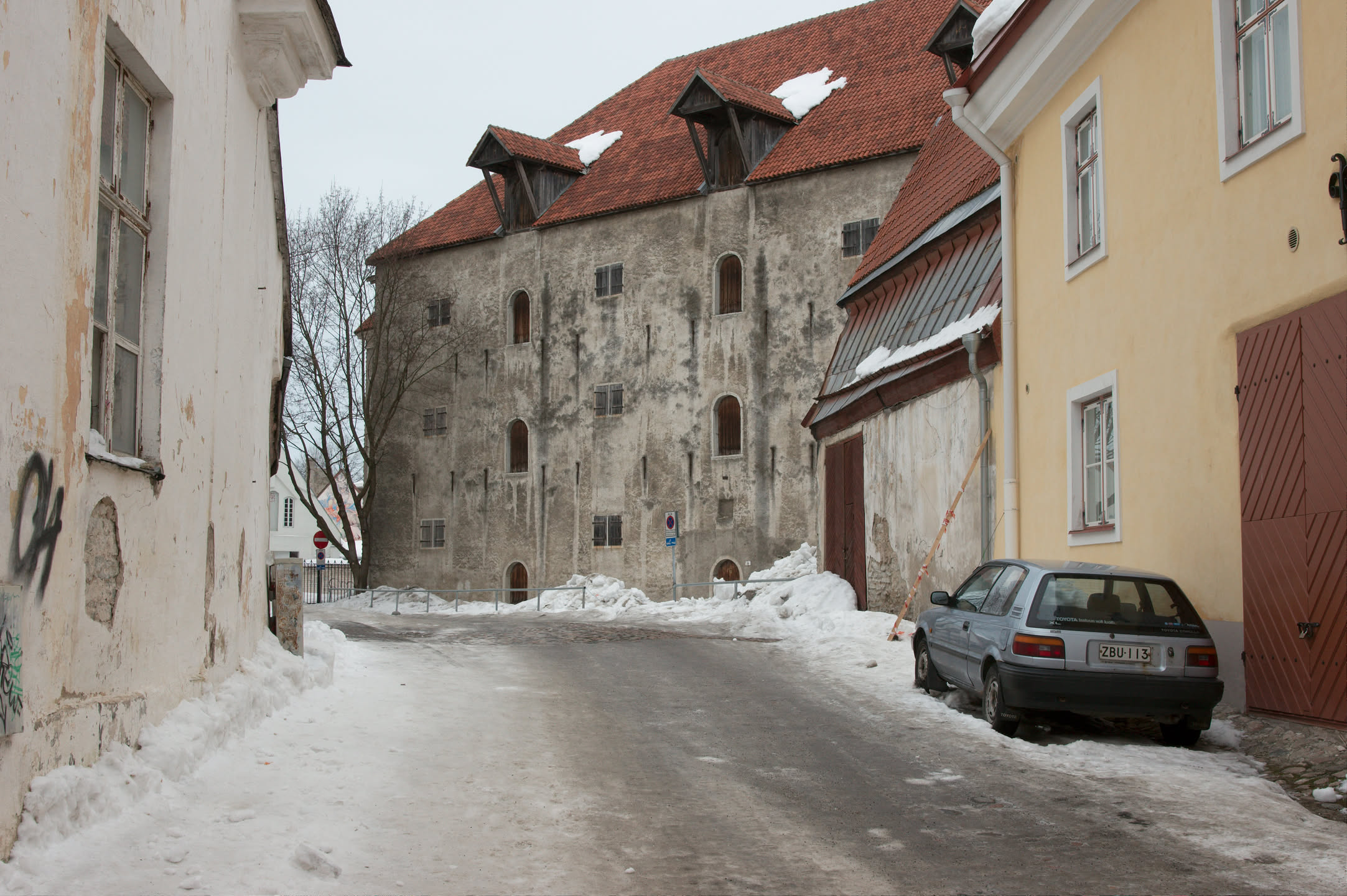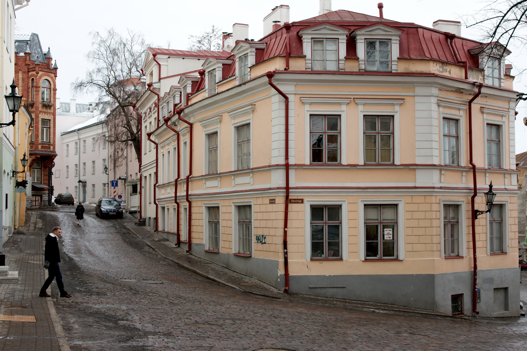 Terwijl Vincent ’s ochtends dus op stap is pak ik mijn fototoestel en maak ik een wandeling. Ons hotel staat in het oude gedeelte van de stad, een prachtig gebied met mooi gebouwde en gekleurde huizen; vlakbij is een heuvel, daar loop ik naar toe en via een stel trappen kom ik op de heuvel terecht. Het uitzicht is prachtig, over de oude stad heen zie je de Oostzee liggen. De gebouwen op de heuvel zijn al even mooi.