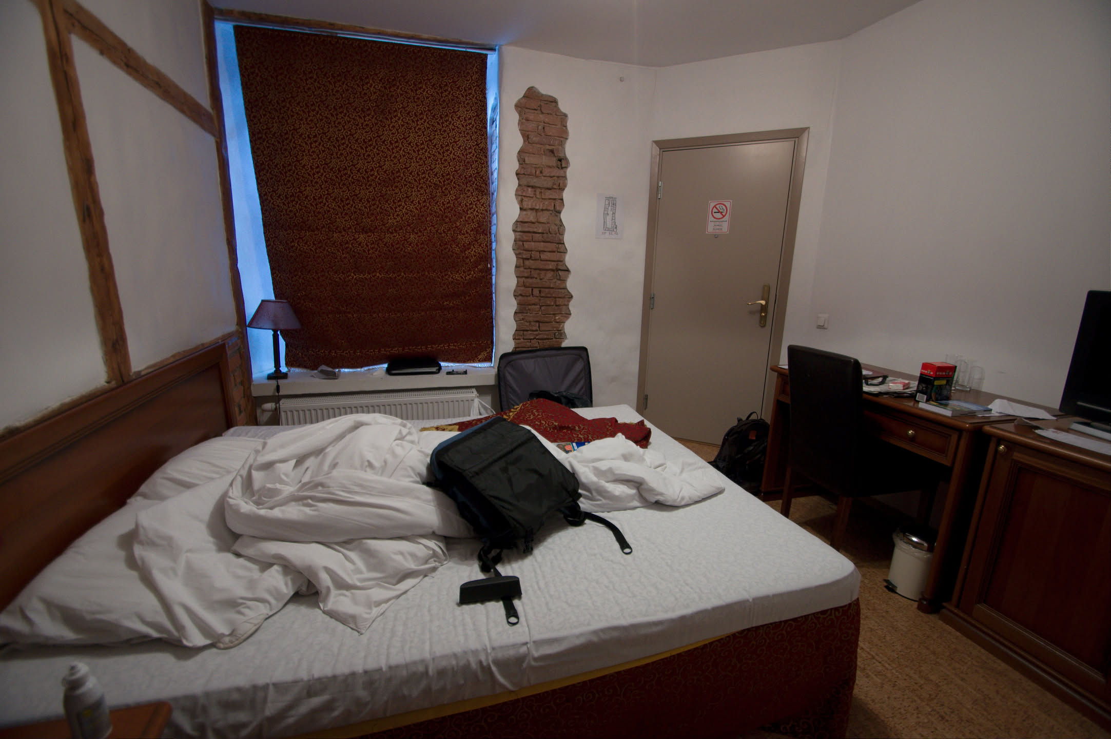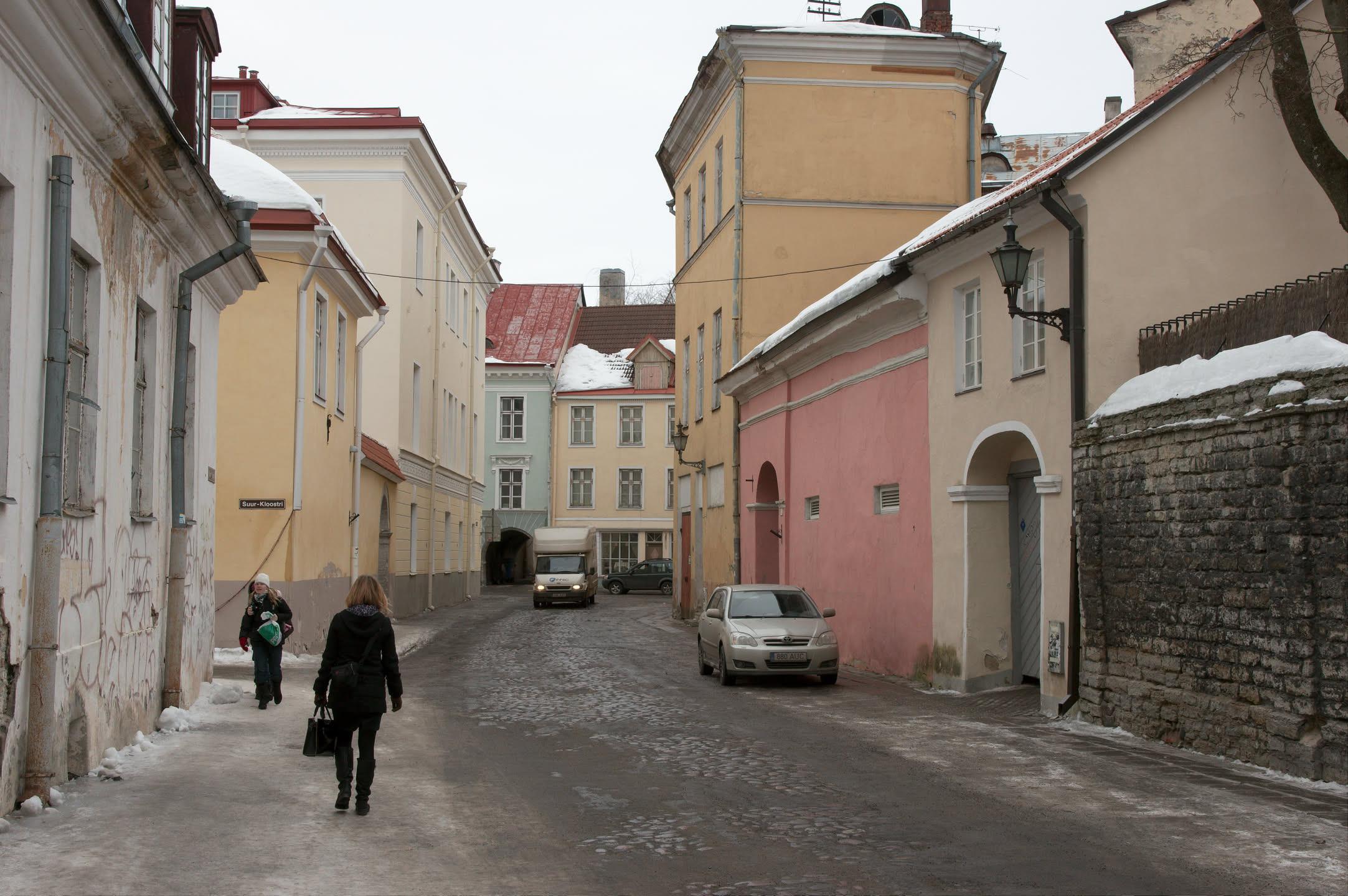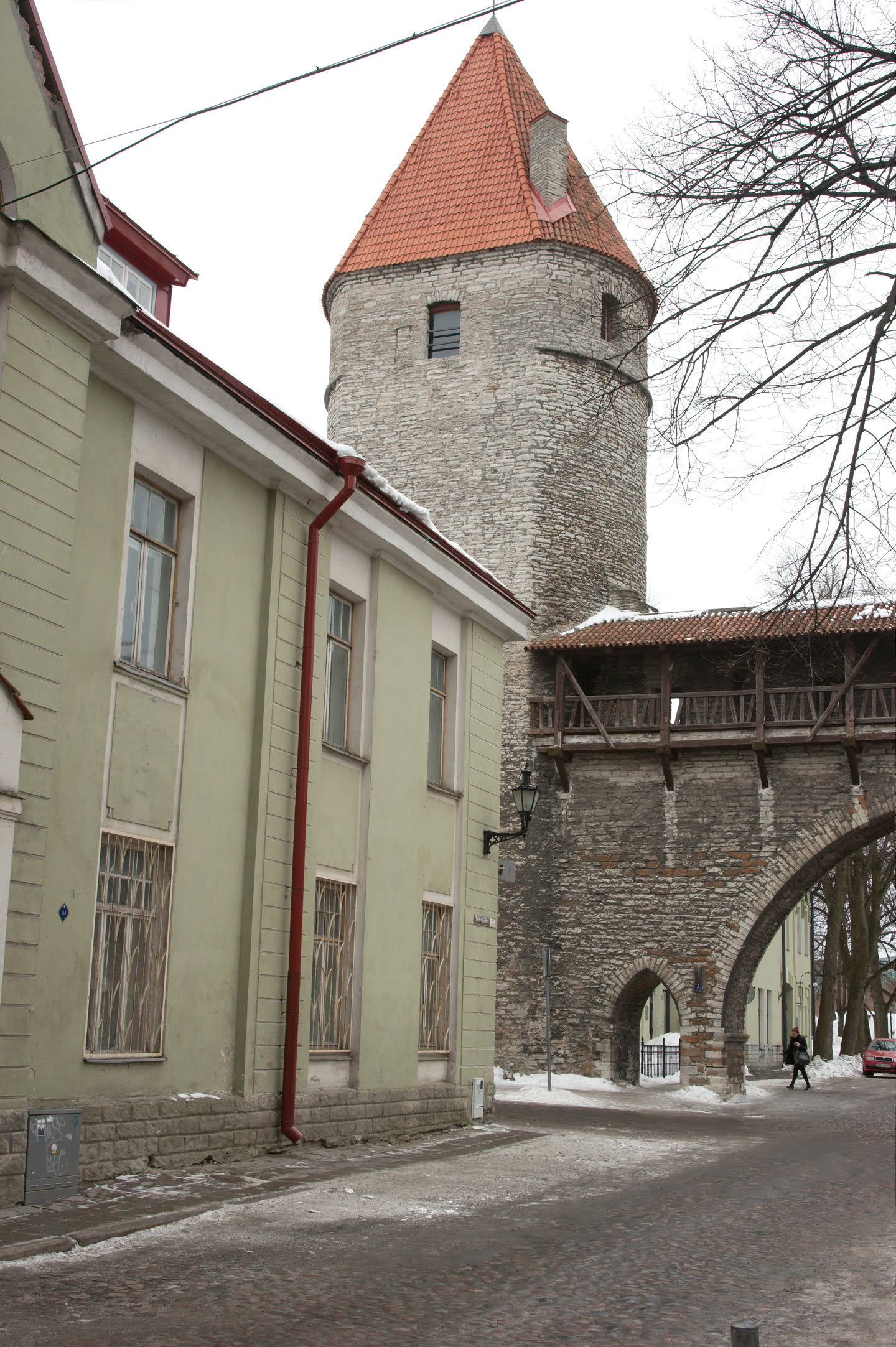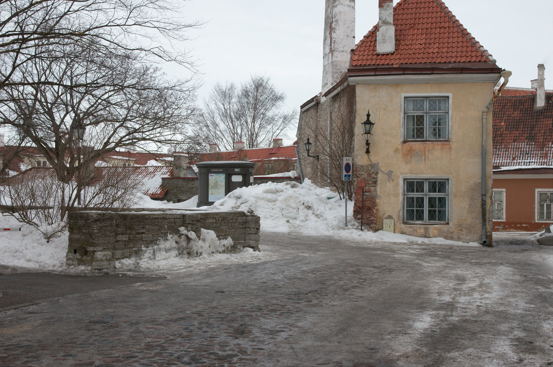 Terwijl Vincent ’s ochtends dus op stap is pak ik mijn fototoestel en maak ik een wandeling. Ons hotel staat in het oude gedeelte van de stad, een prachtig gebied met mooi gebouwde en gekleurde huizen; vlakbij is een heuvel, daar loop ik naar toe en via een stel trappen kom ik op de heuvel terecht. Het uitzicht is prachtig, over de oude stad heen zie je de Oostzee liggen. De gebouwen op de heuvel zijn al even mooi.