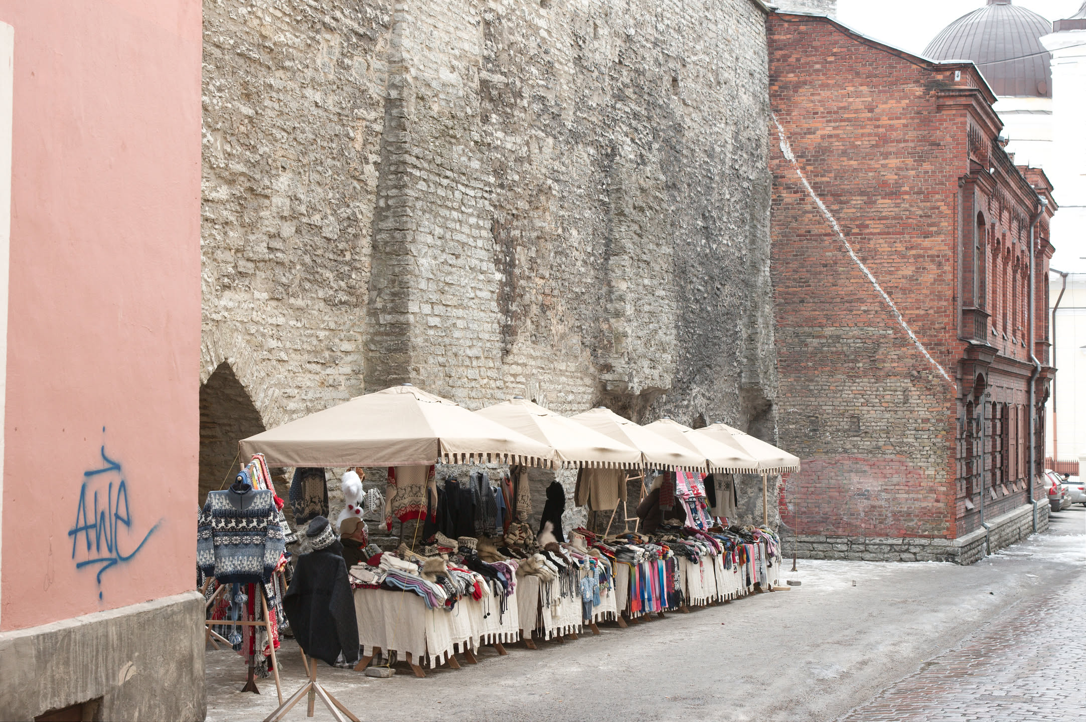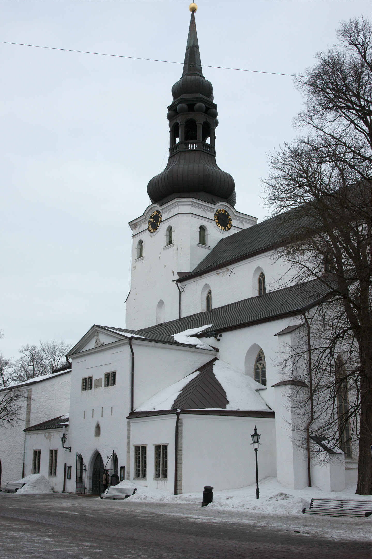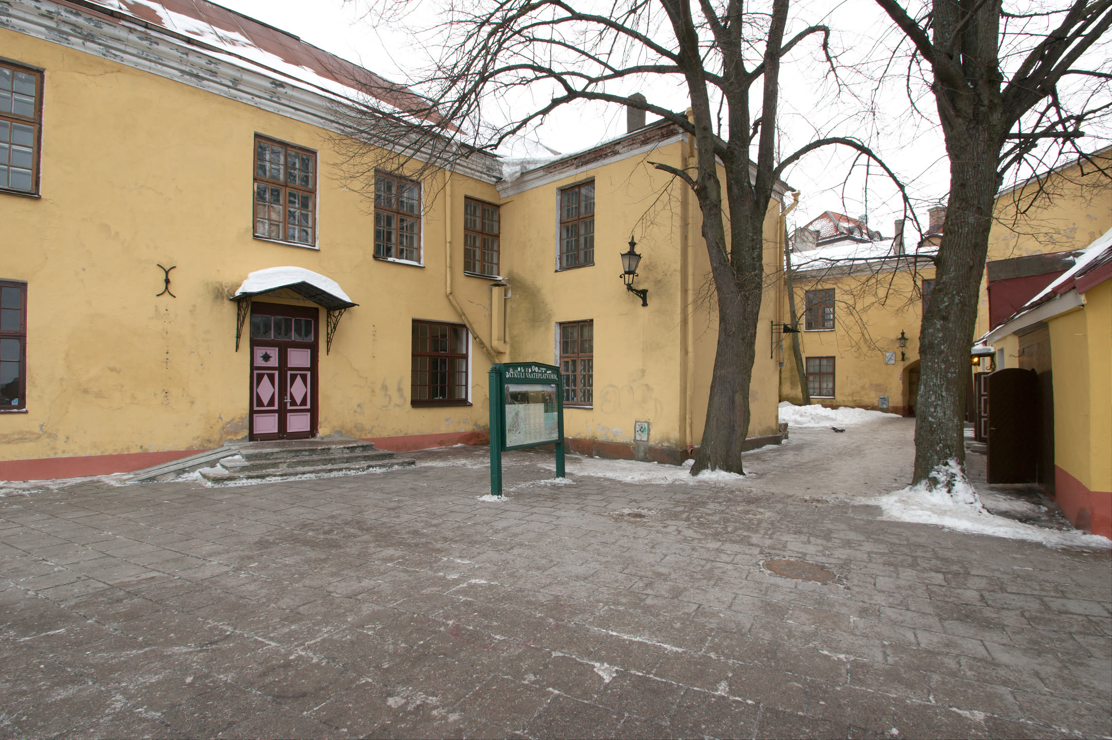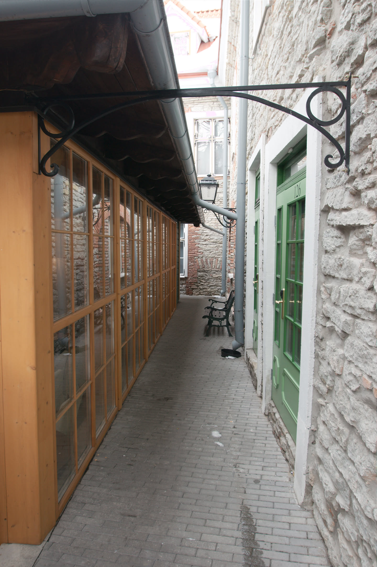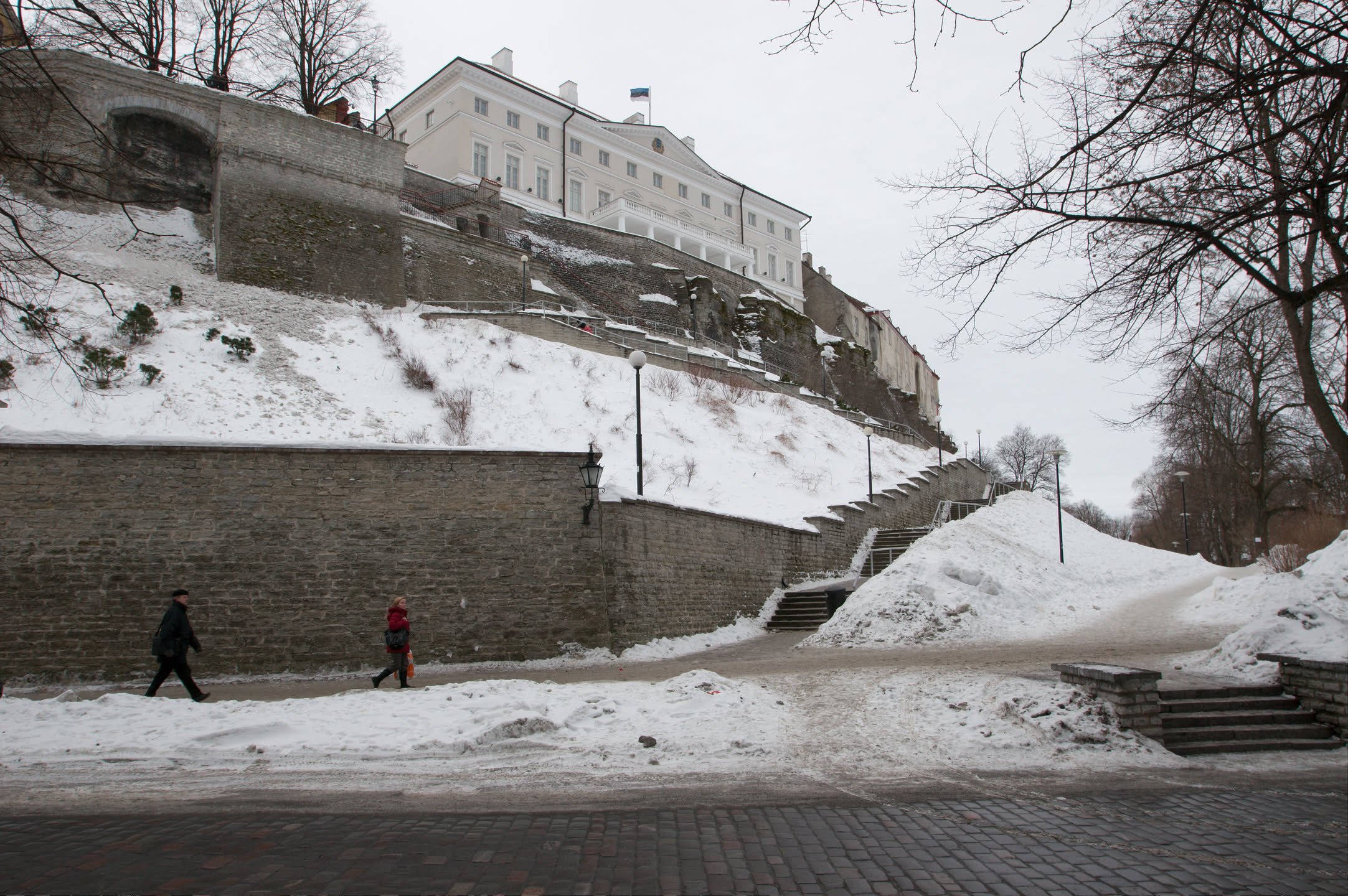 Terwijl Vincent ’s ochtends dus op stap is pak ik mijn fototoestel en maak ik een wandeling. Ons hotel staat in het oude gedeelte van de stad, een prachtig gebied met mooi gebouwde en gekleurde huizen; vlakbij is een heuvel, daar loop ik naar toe en via een stel trappen kom ik op de heuvel terecht. Het uitzicht is prachtig, over de oude stad heen zie je de Oostzee liggen. De gebouwen op de heuvel zijn al even mooi.