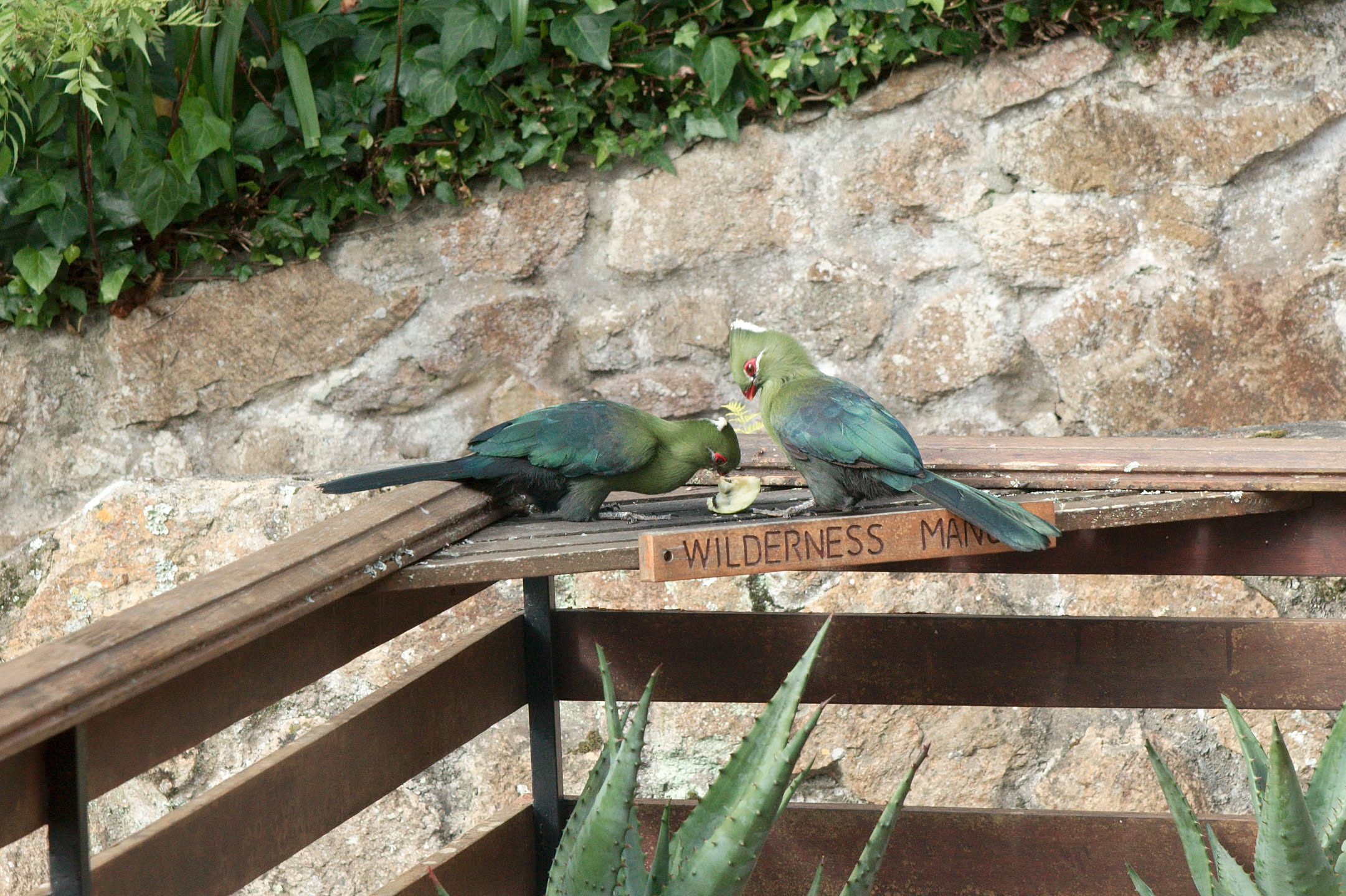 De eigenaars van het guest house leggen ons omstandig uit wat er allemaal te doen valt in Wildernis, hanggliden, kanoën, wandelen, en nog veel meer.