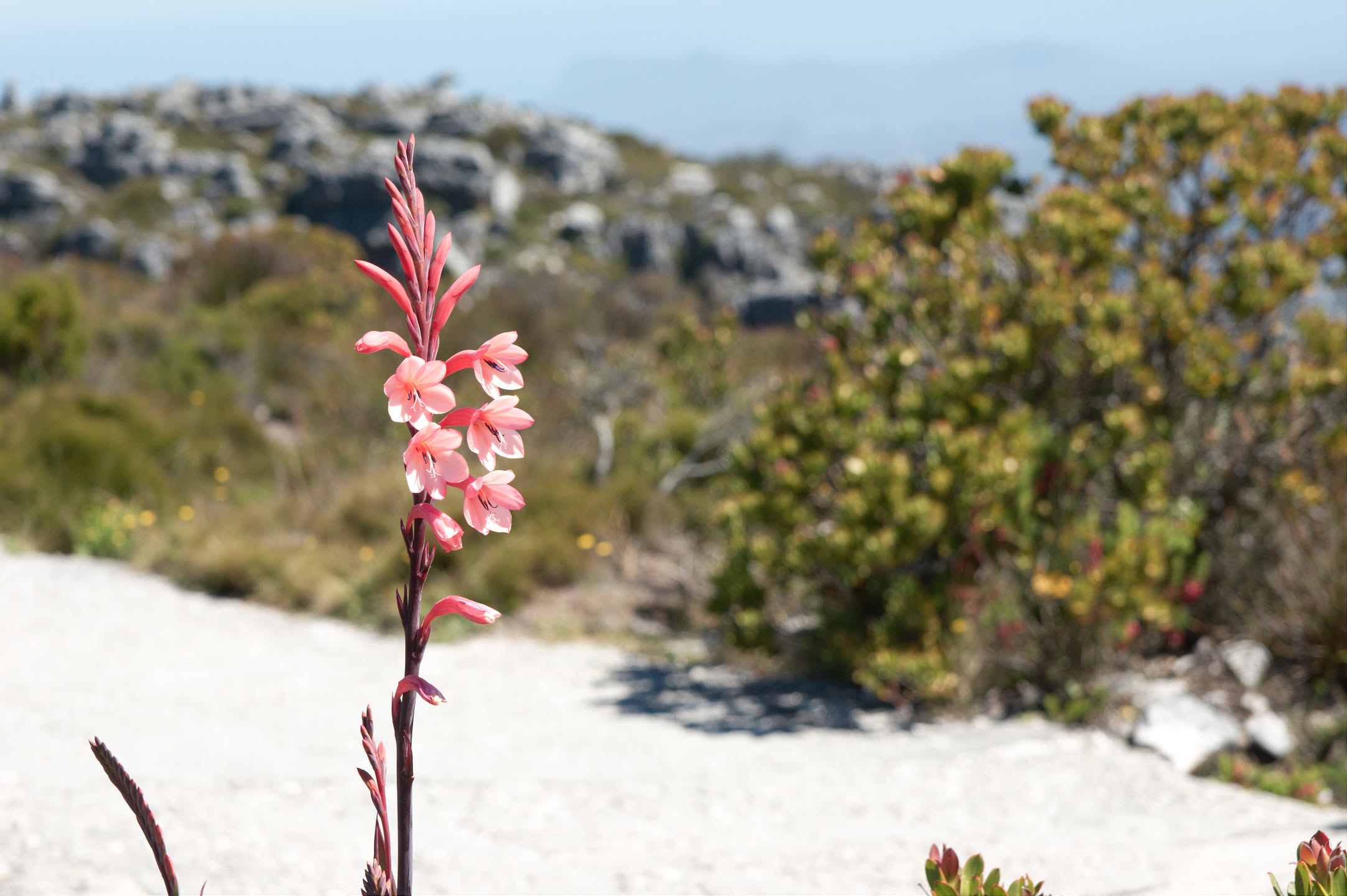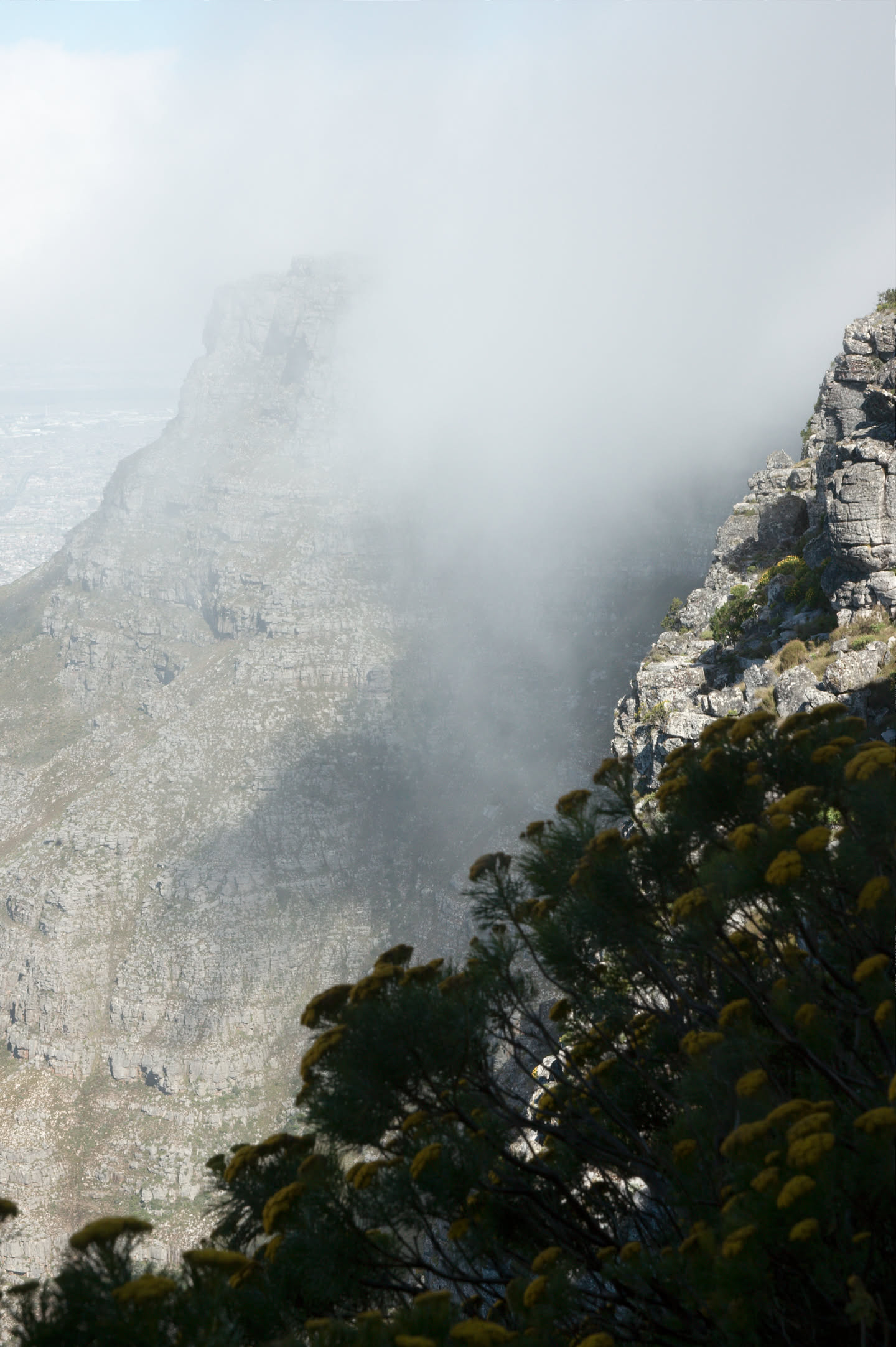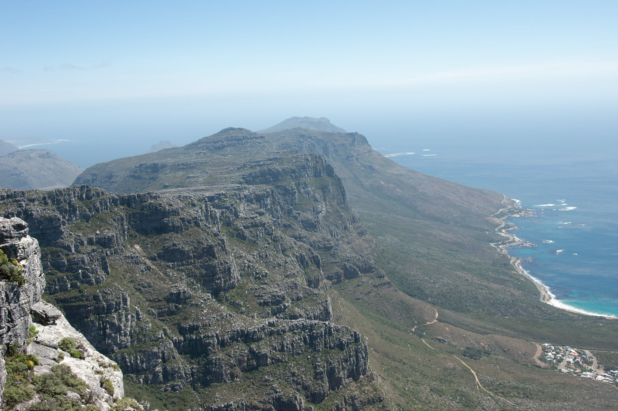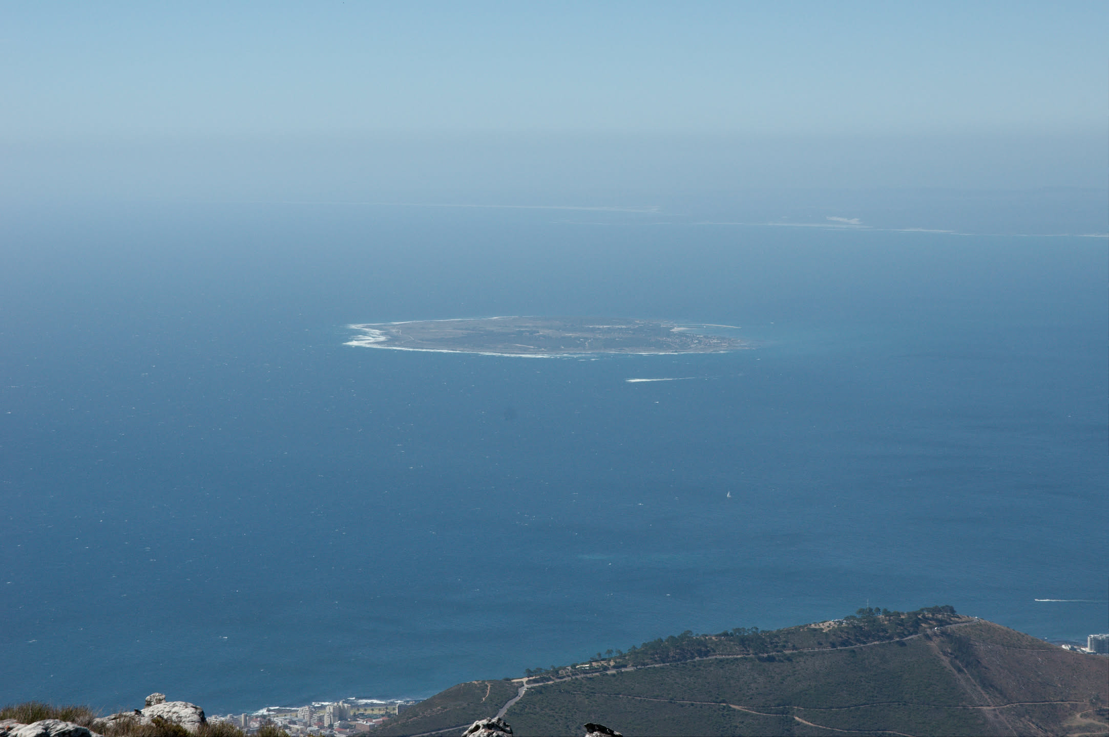 En dan zijn we boven! 1 kilometer boven de zeespiegel met prachtige vergezichten in alle richtingen. Het mooist vind ik het uitzicht over de stad, ook Robbeneiland is heel erg goed te zien en is groter dan ik had verwacht.