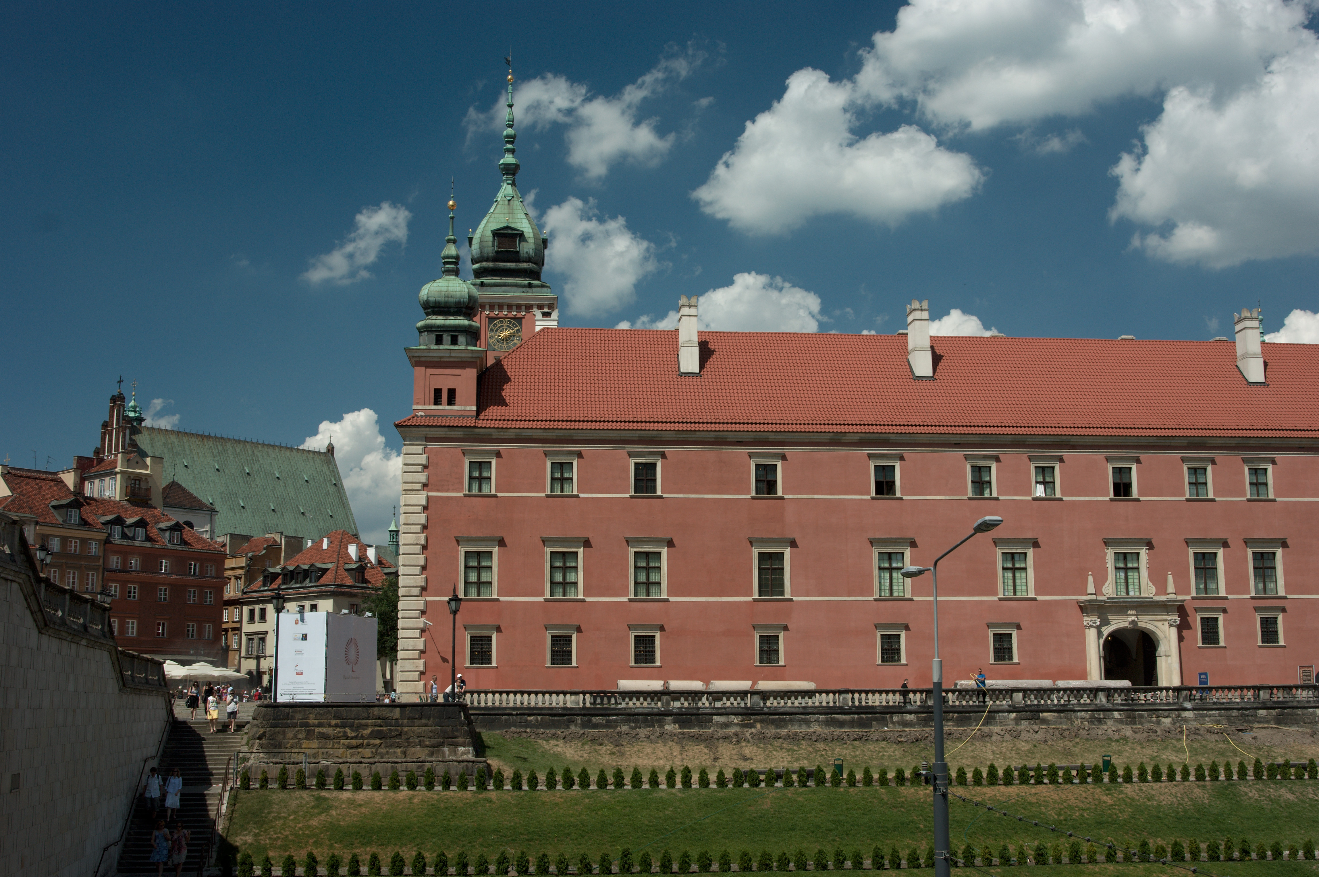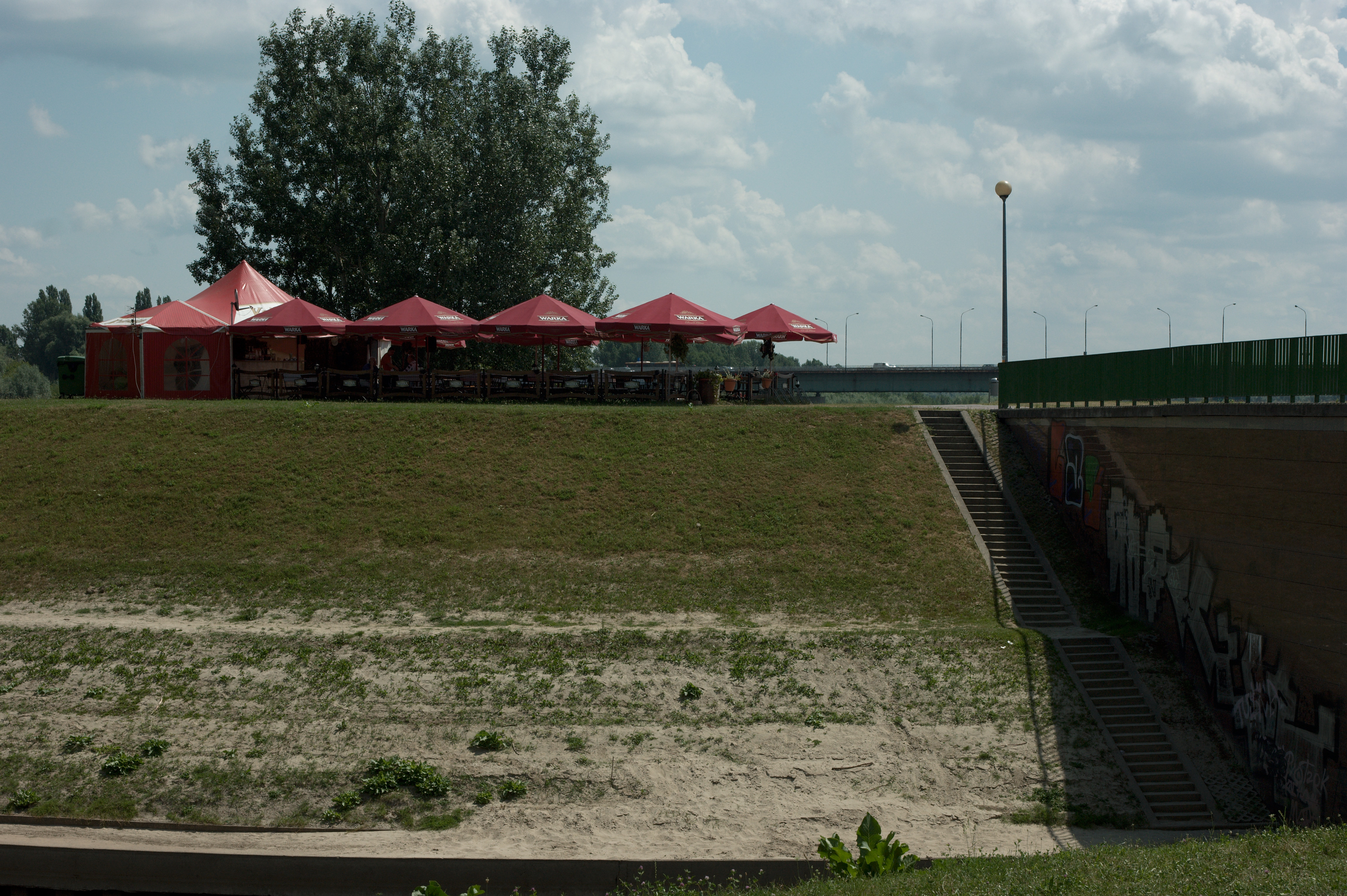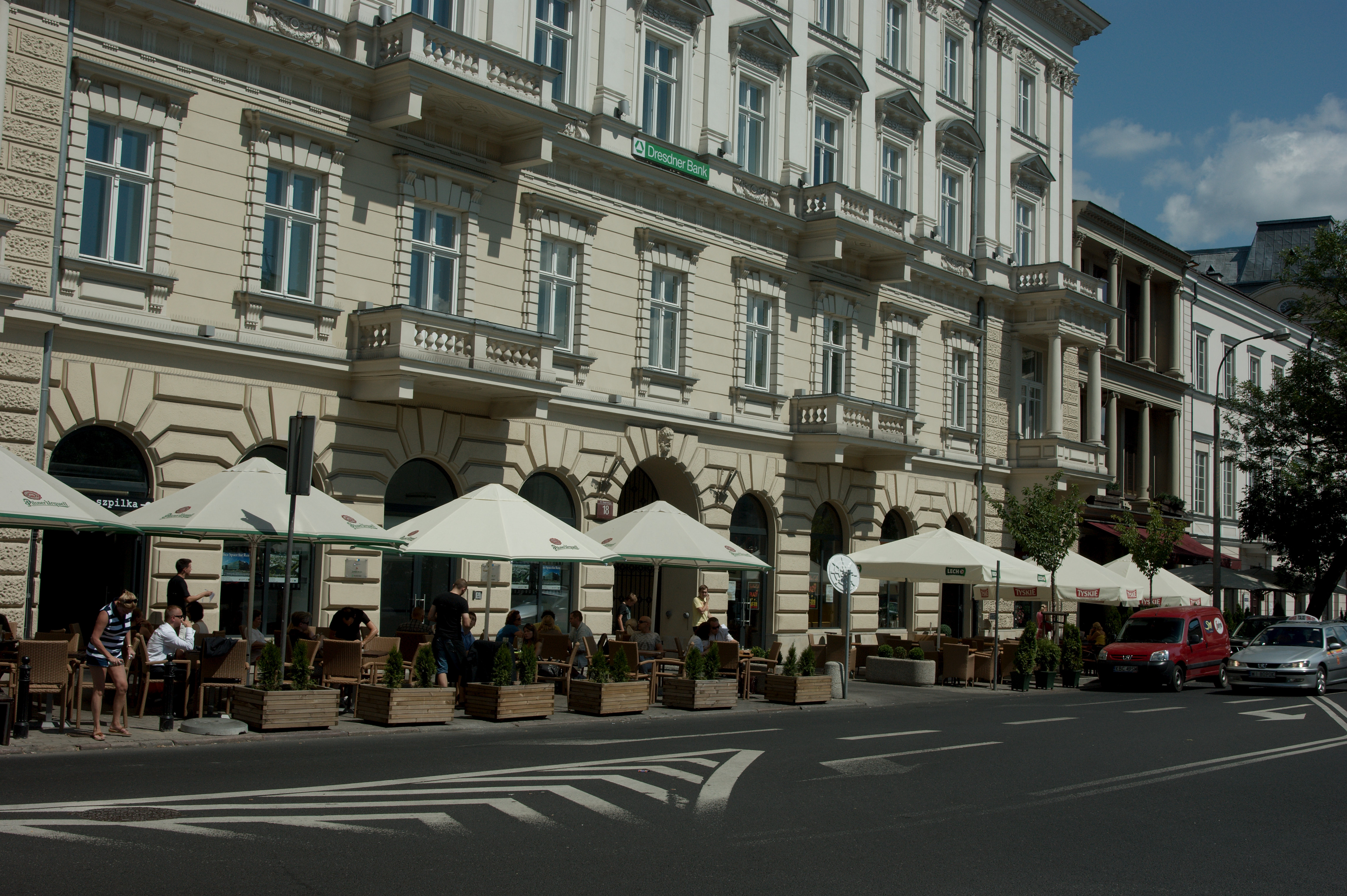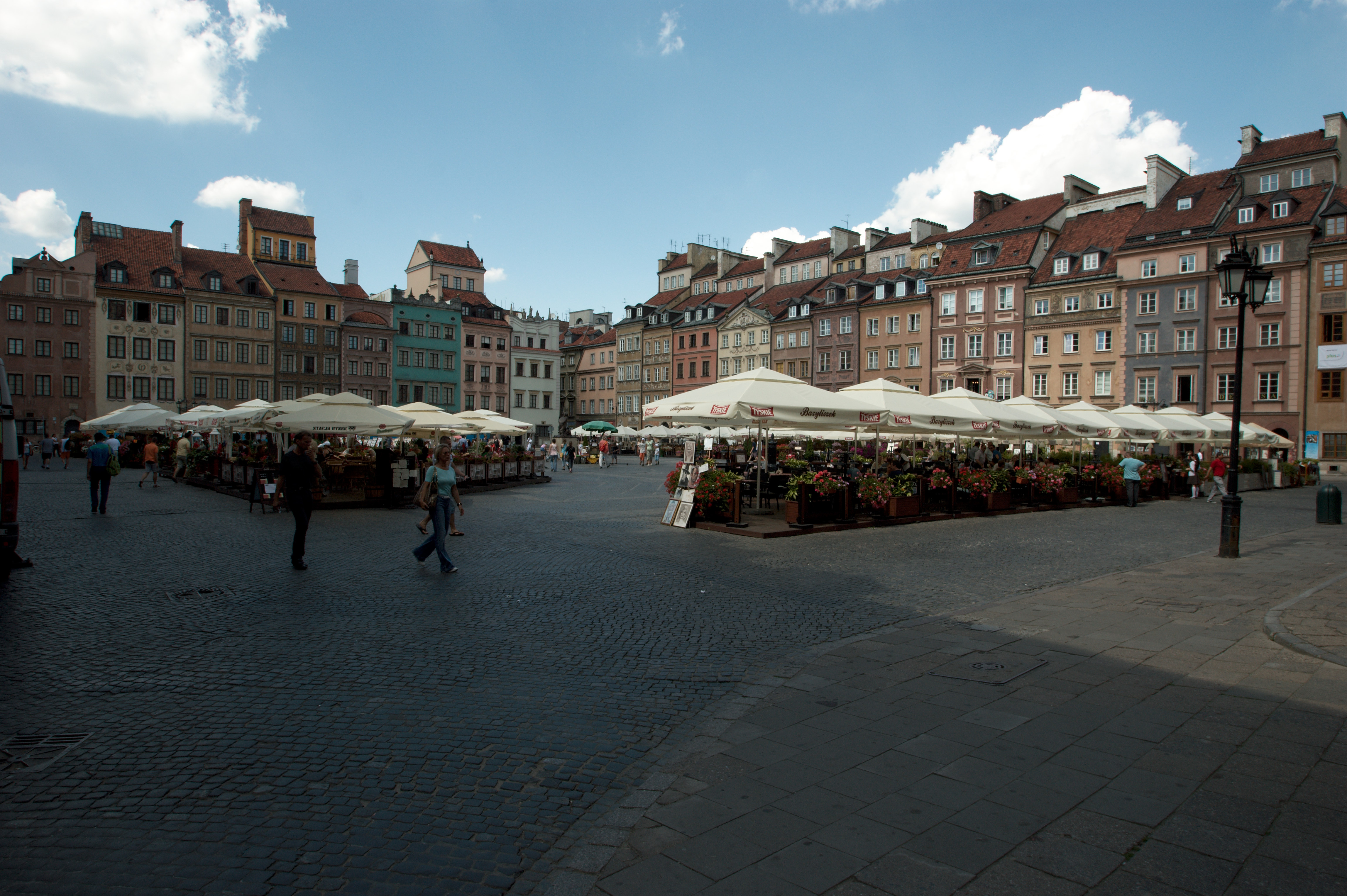 Vincent is naar de conferentie, ik maak me op voor een flinke wandeling door de stad met het fototoestel in de aanslag. De wandeling loopt van het hotel richting westen naar de rivier de Wisla; in een eet- en drinktentje aan het water lunch ik een flink glas bier. Daarna volg ik de rivier richting noorden tot aan de brug vlakbij de oude stad. Die oude stad is minder oud dan gedacht, hij is in de oorlog (in 1944) plat gegooid en later in oude stijl herbouwd. Het is een prachtig oud stadje waar ik me op een pleintje vermaak met wat biertjes en wat hapjes.