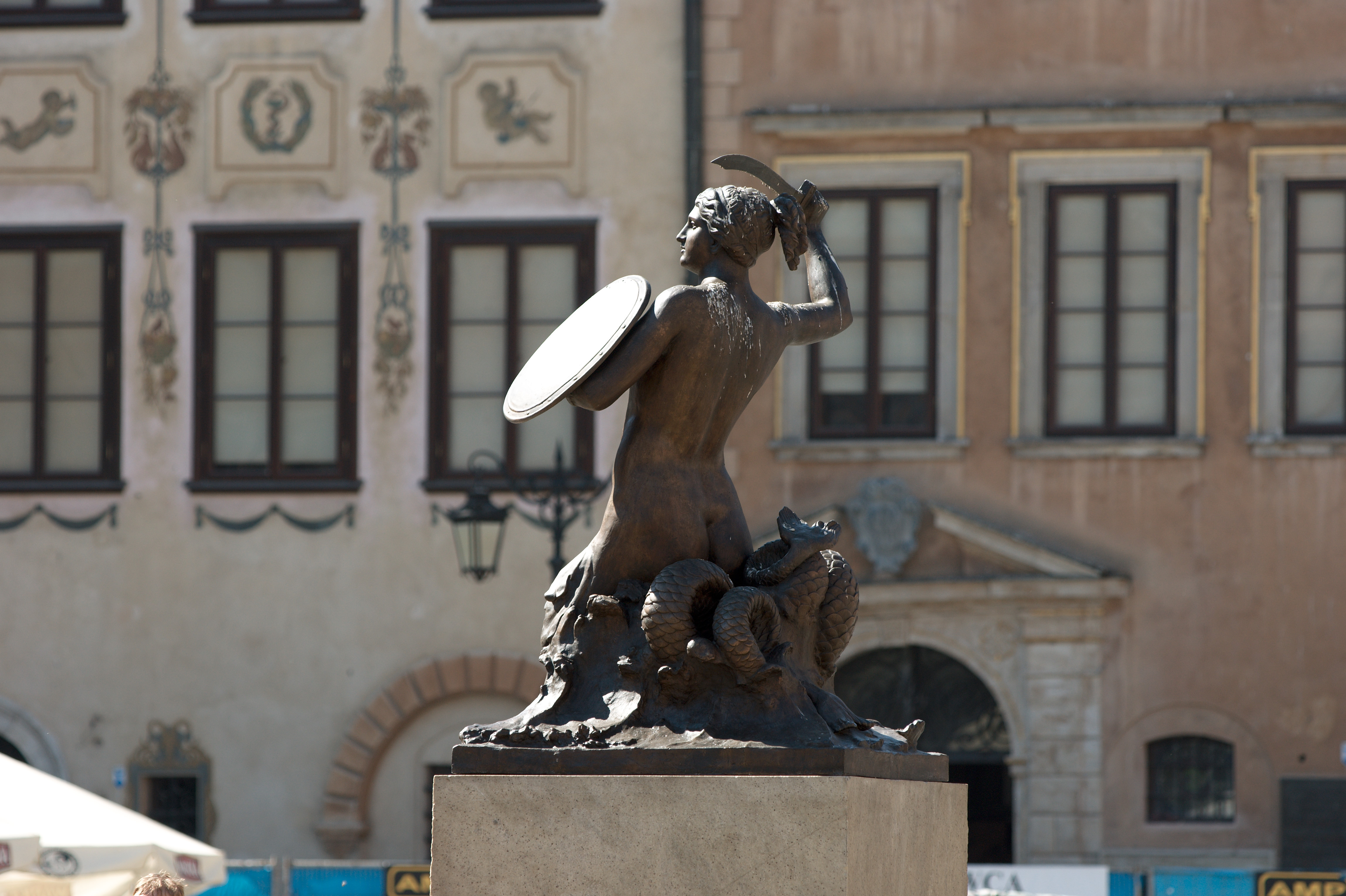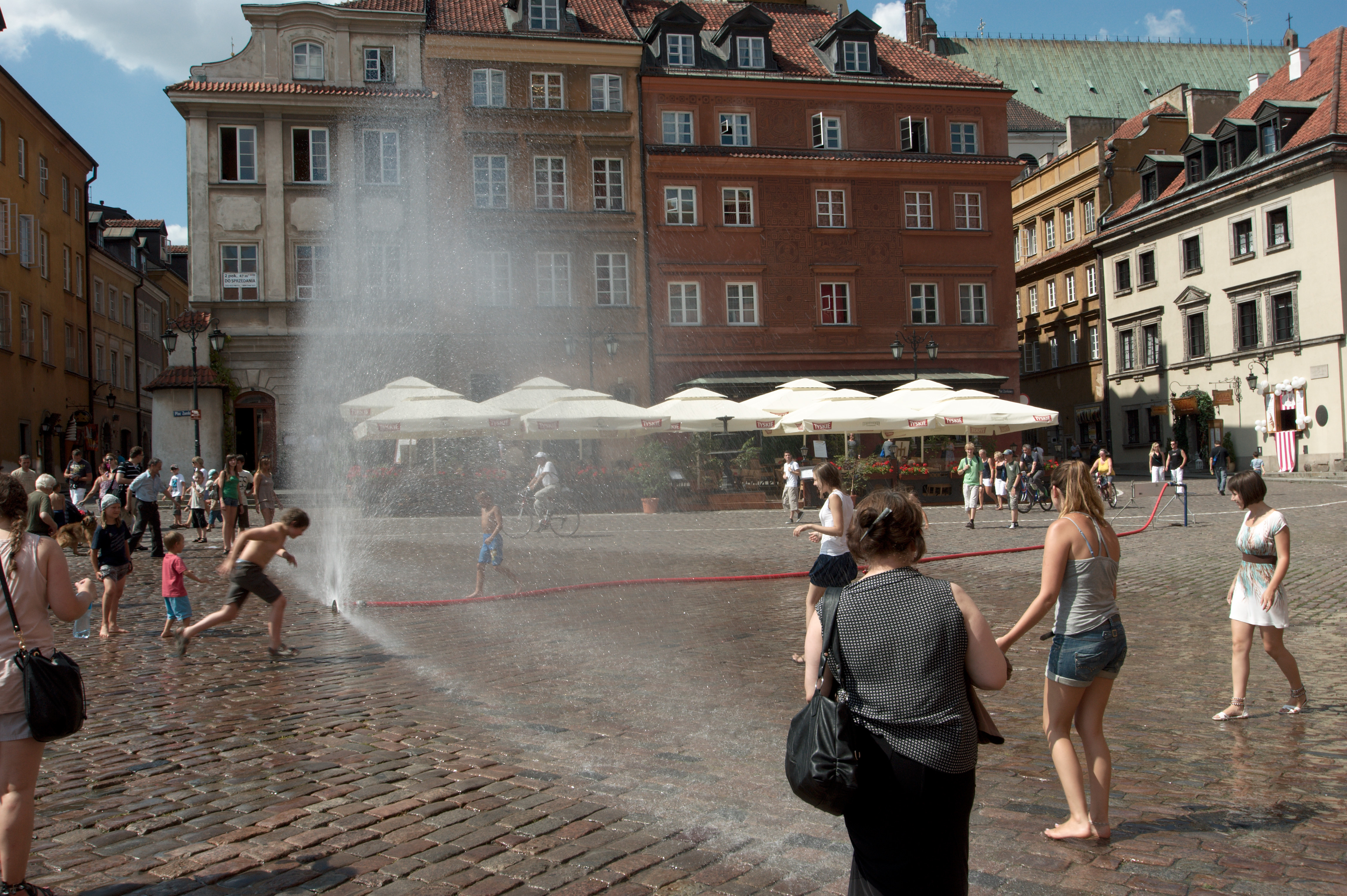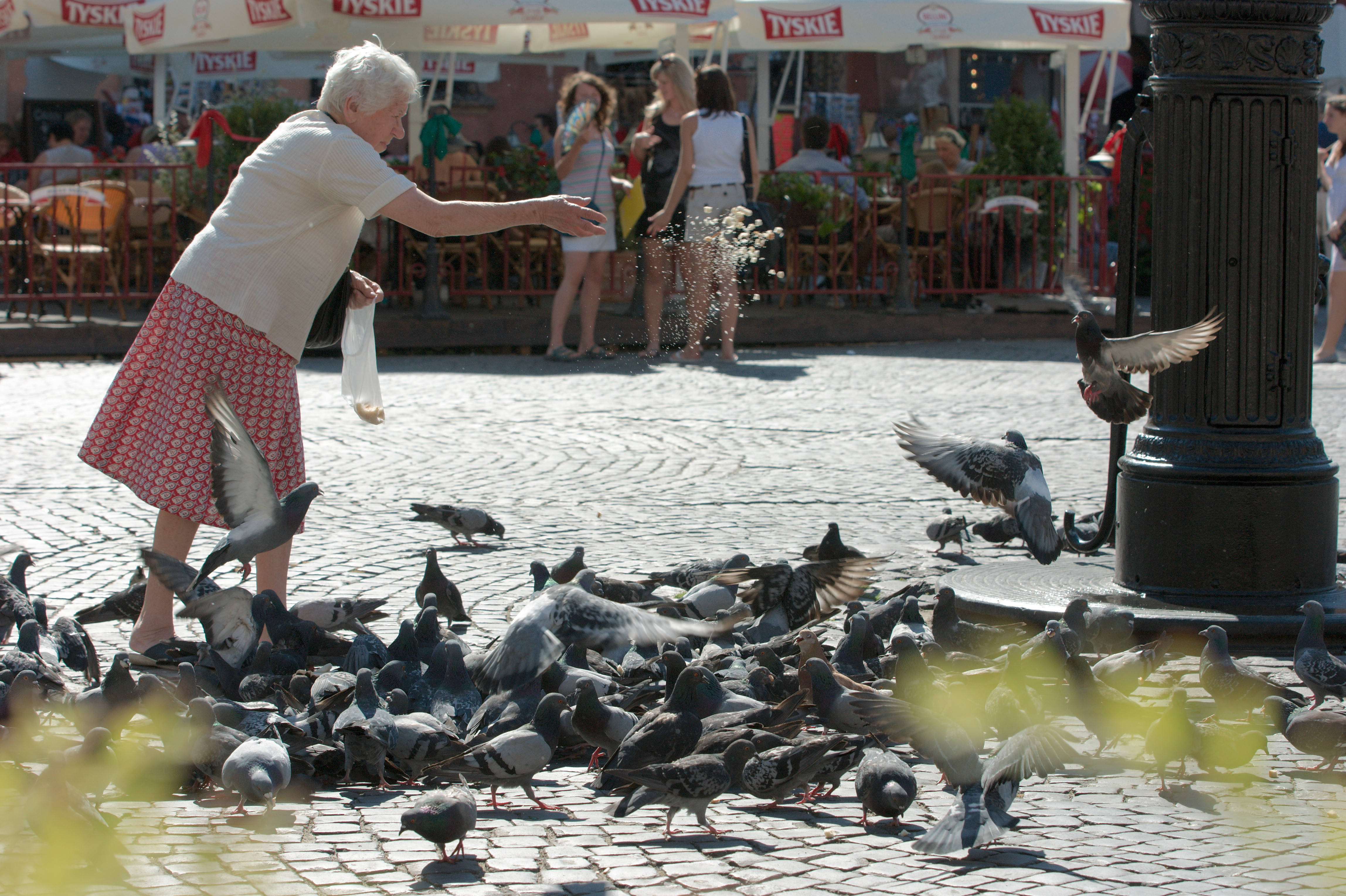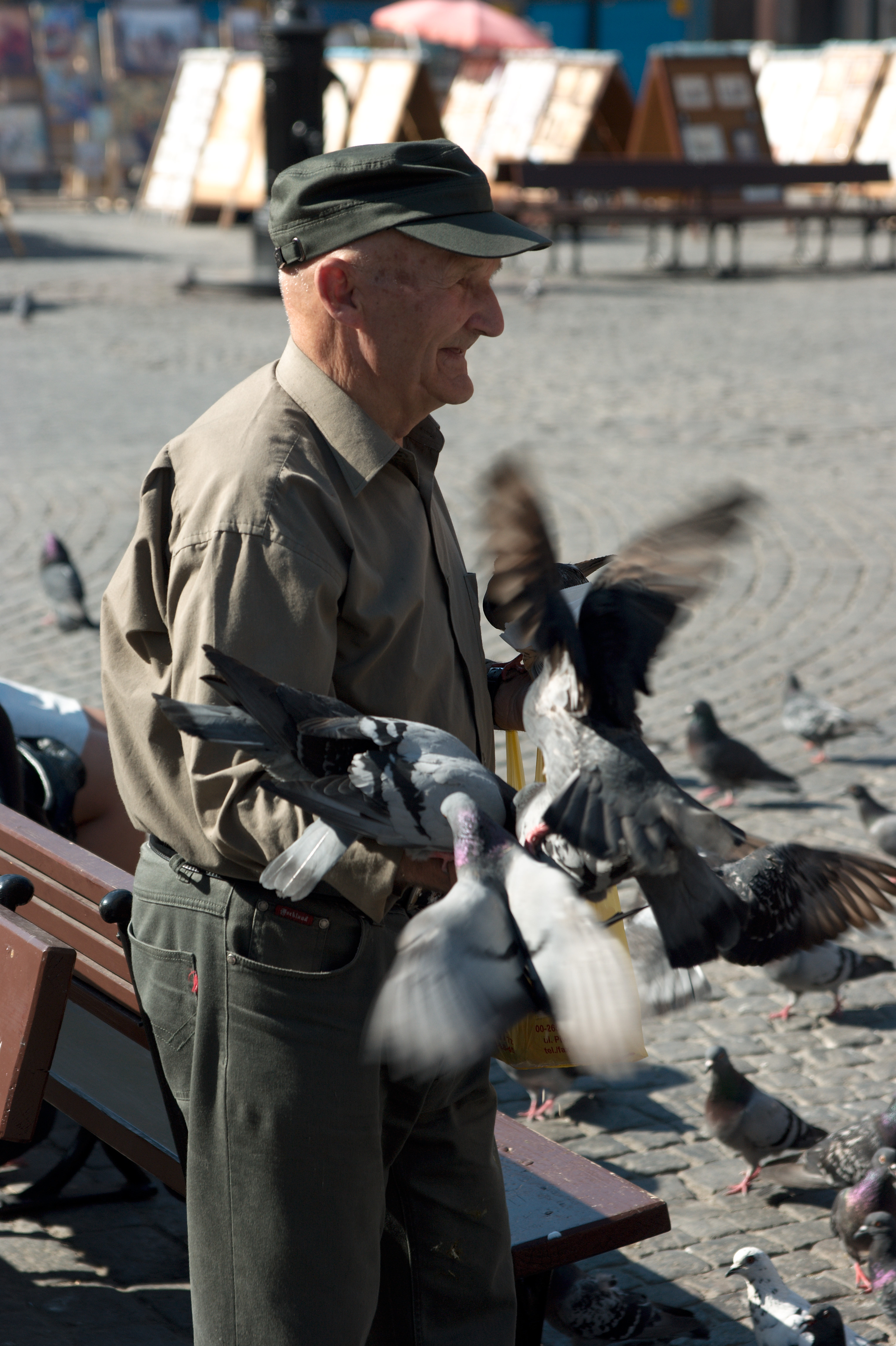 Vincent is naar de conferentie, ik maak me op voor een flinke wandeling door de stad met het fototoestel in de aanslag. De wandeling loopt van het hotel richting westen naar de rivier de Wisla; in een eet- en drinktentje aan het water lunch ik een flink glas bier. Daarna volg ik de rivier richting noorden tot aan de brug vlakbij de oude stad. Die oude stad is minder oud dan gedacht, hij is in de oorlog (in 1944) plat gegooid en later in oude stijl herbouwd. Het is een prachtig oud stadje waar ik me op een pleintje vermaak met wat biertjes en wat hapjes.