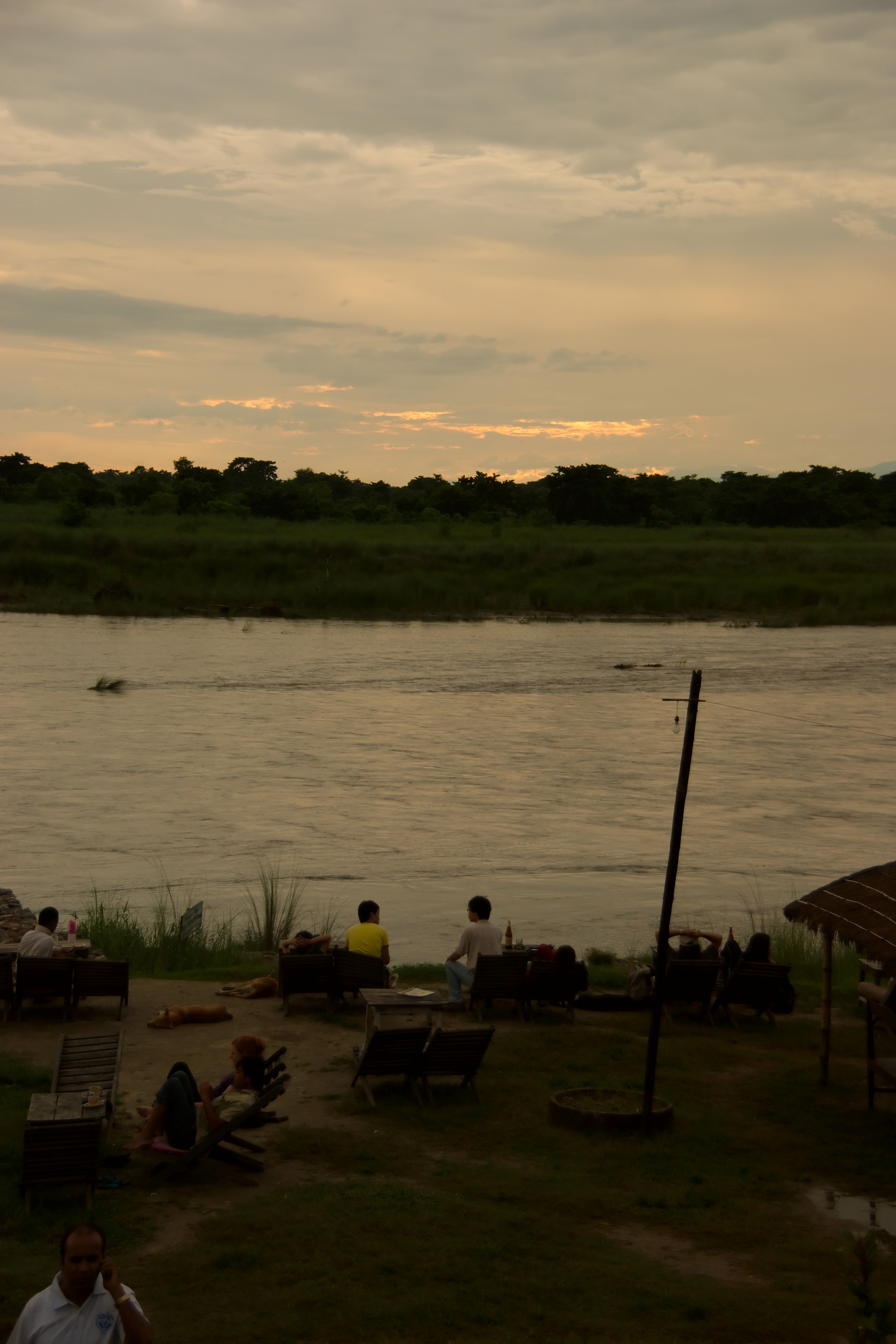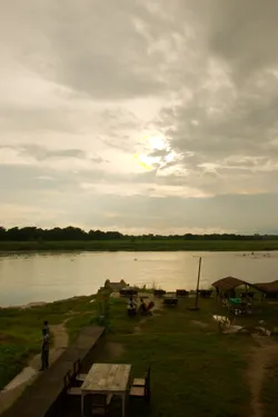 Hier aan de rivier gaan we de zonsondergang meemaken
