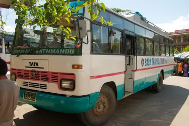 Met deze bus zijn we in 6 uur tijd naar Chitwan gereisd