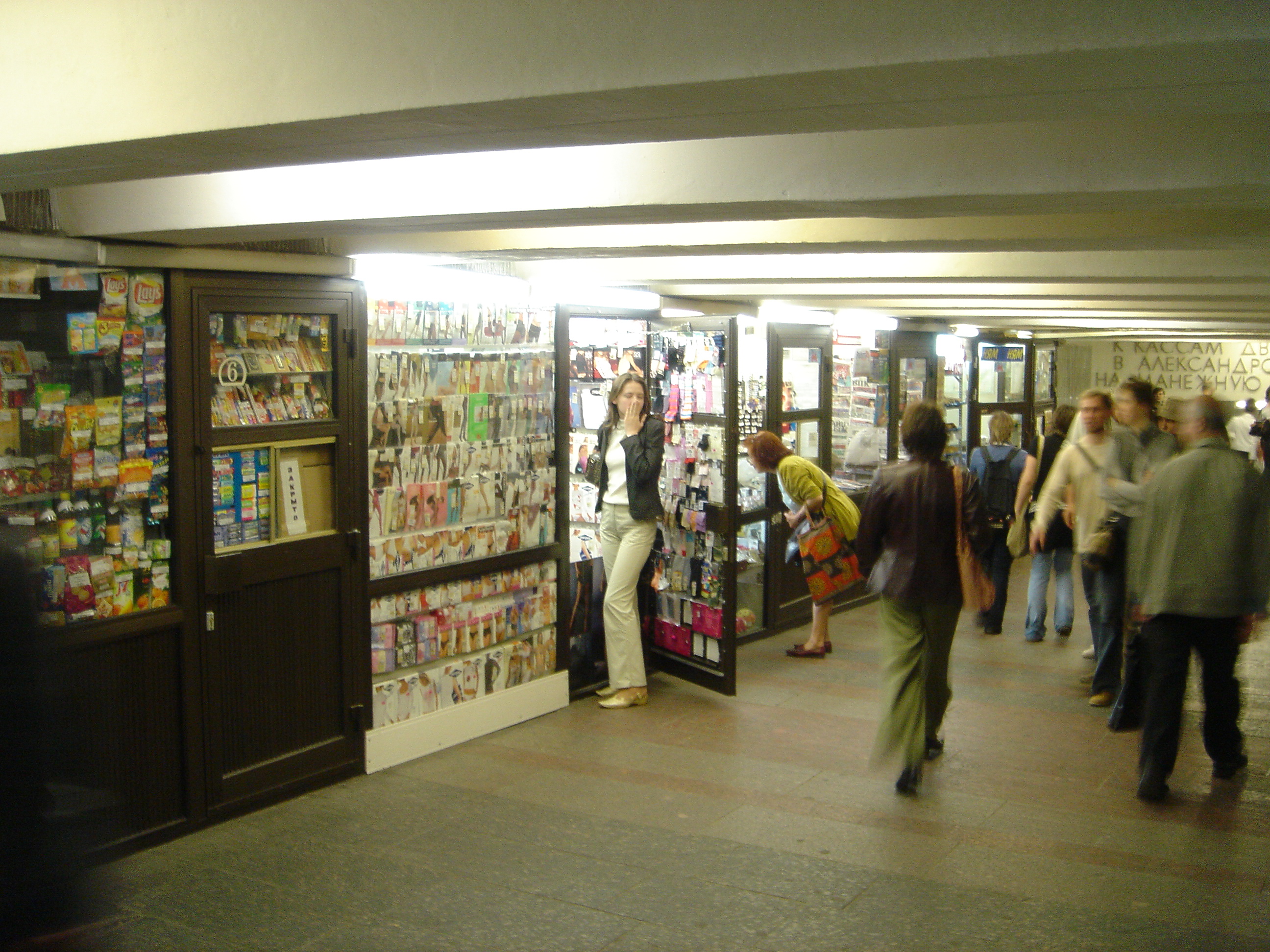Tunnel onder weg door met winkeltjes