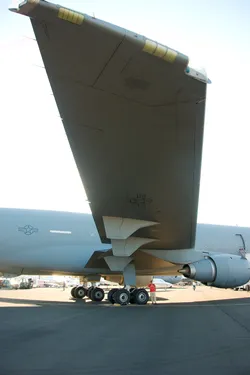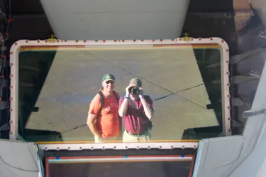 Het kijkgat van een tankvliegtuig voor de 'boomoperator'