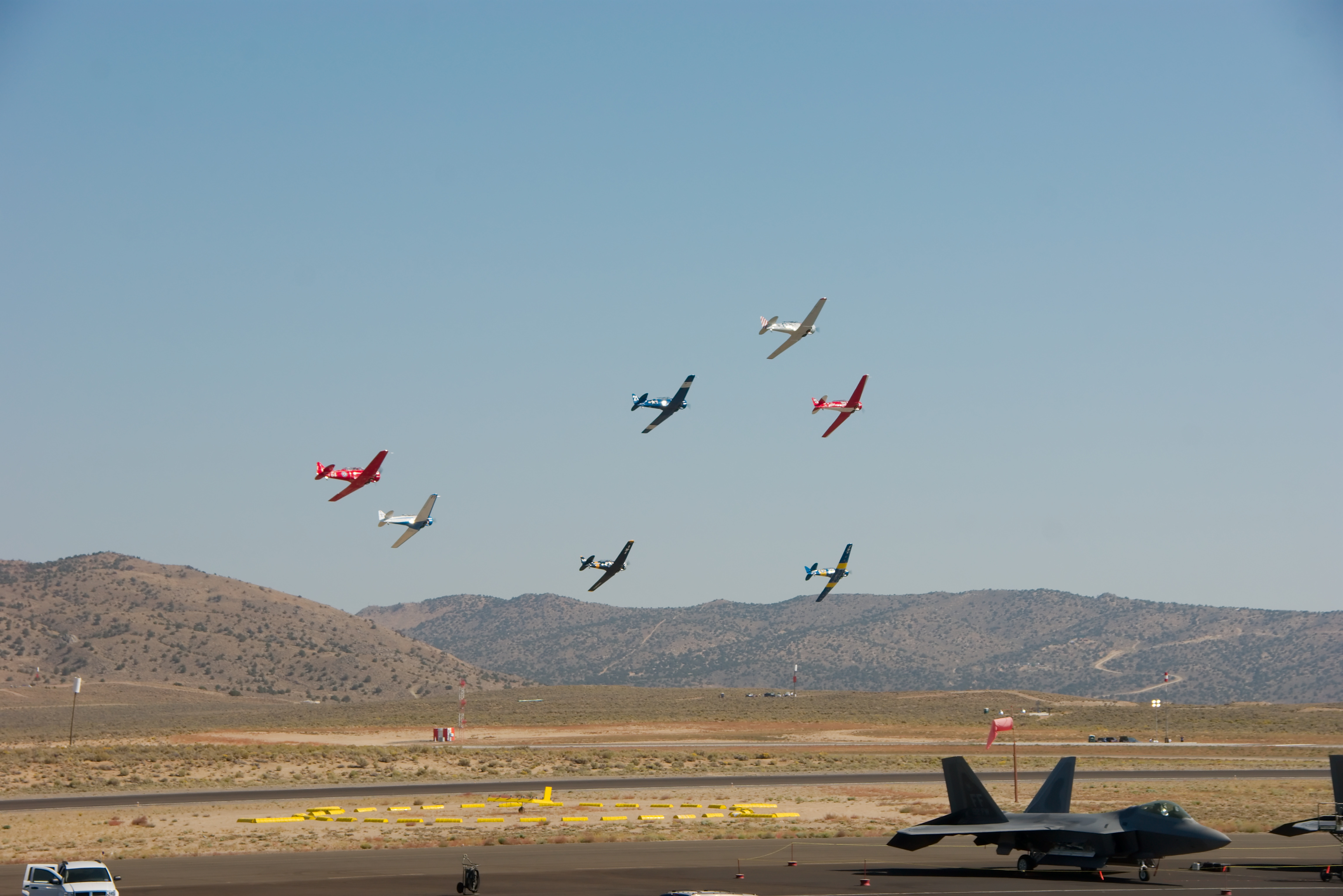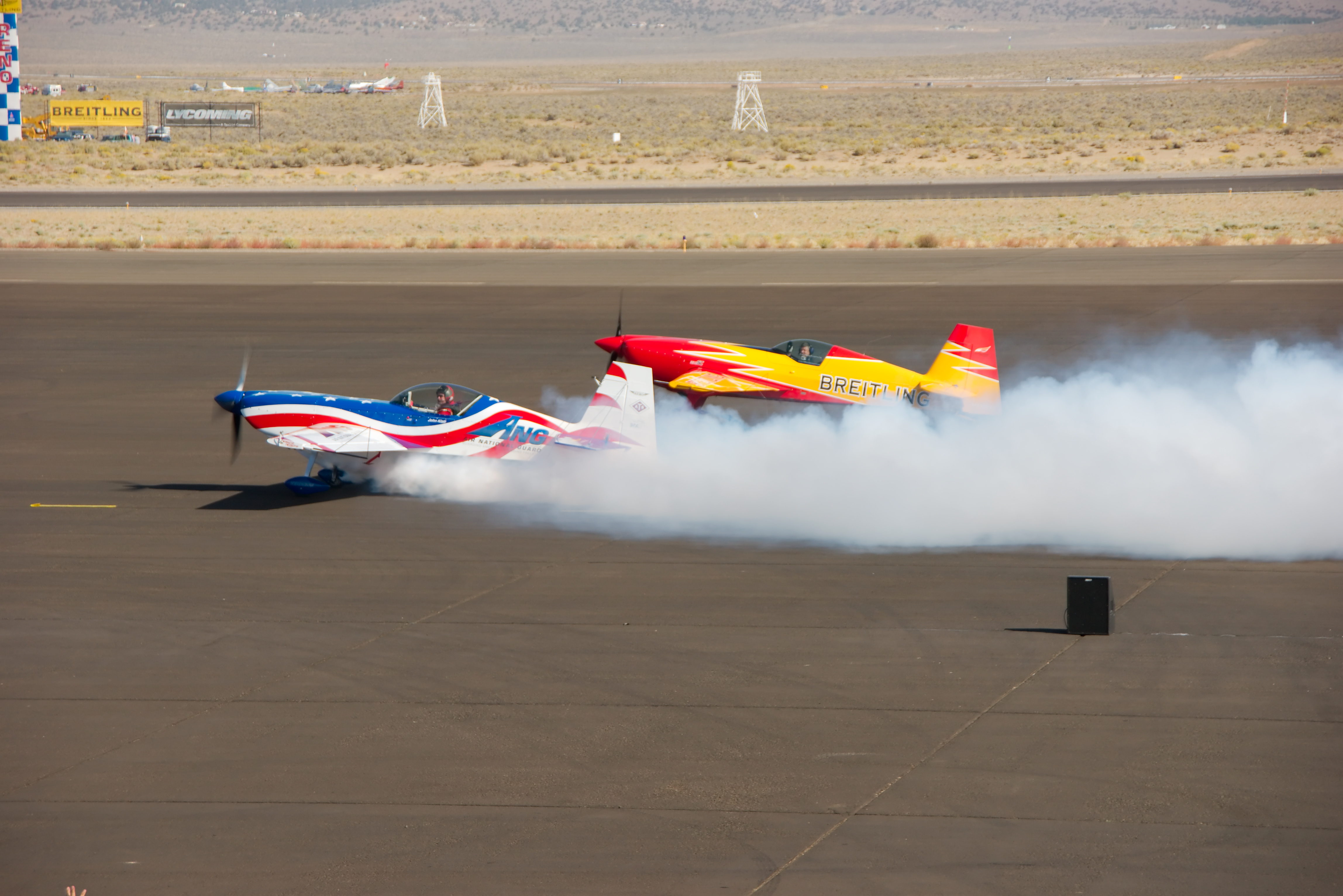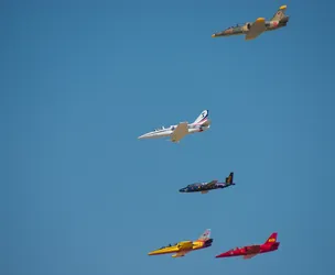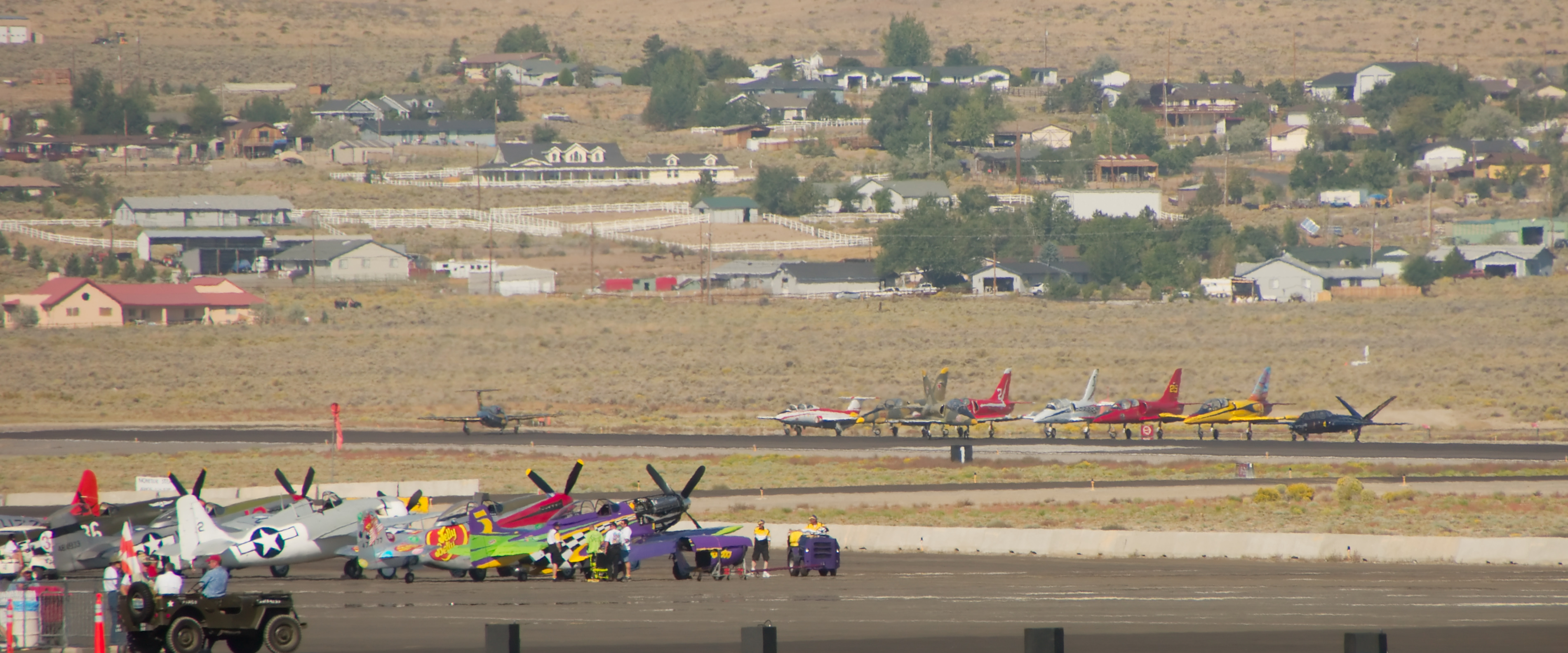 Achter op de baan staan de jets klaar voor hun wedstrijd