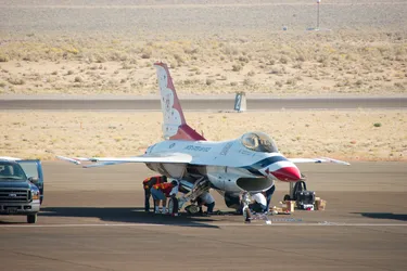 Werk aan de F16 van de Thunderbirds
