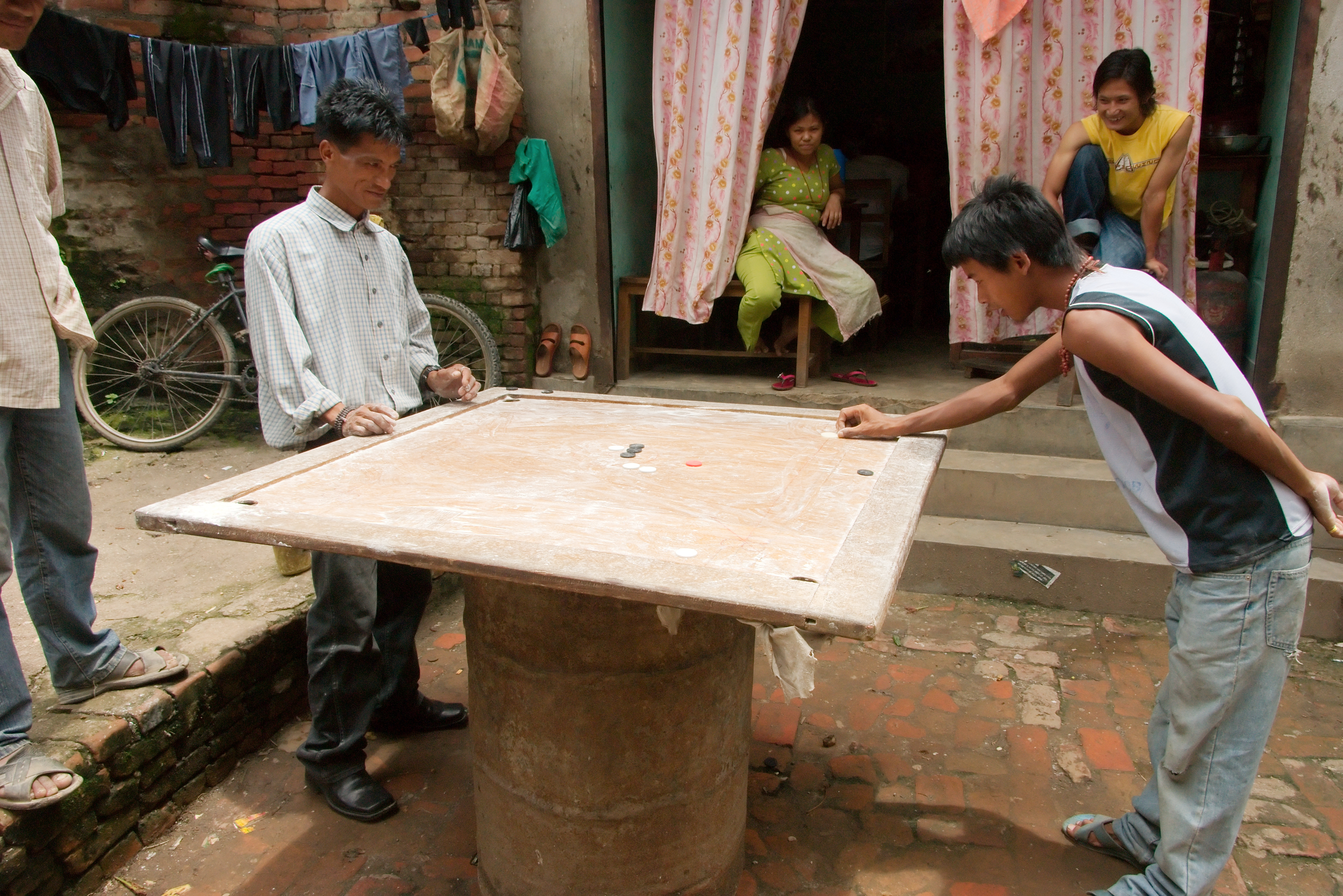Dit is een nationale sport: een soort poolen maar dan met schijfjes