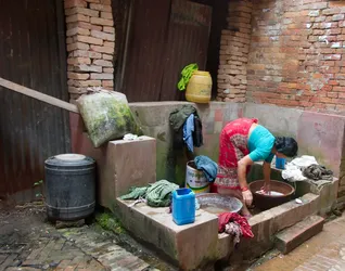 Durbar Square in Bhaktapur; er zijn nauwelijks wasmachines in Nepal