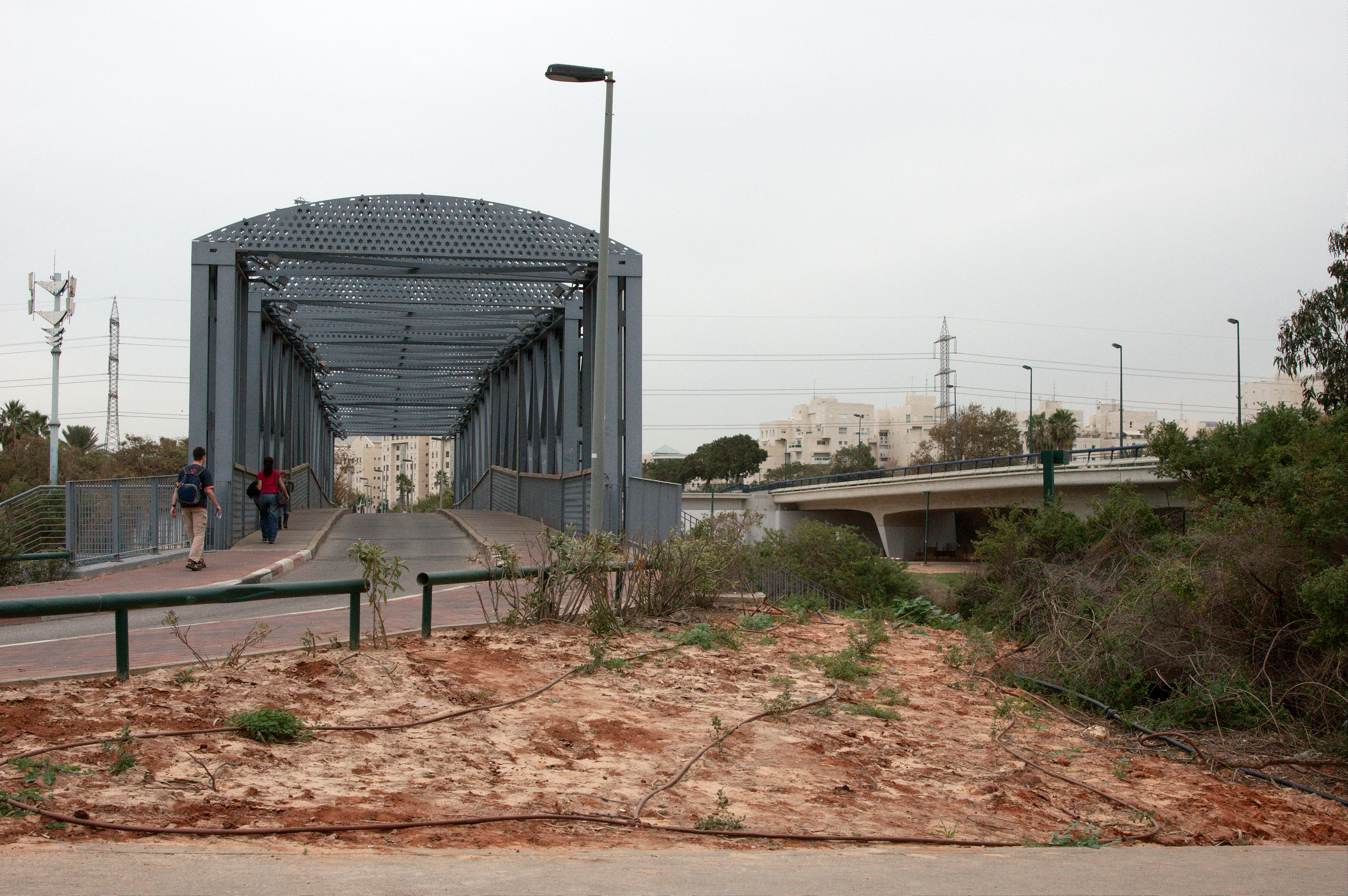 Bruggen over riviertje aan de noordkant van Tel Aviv