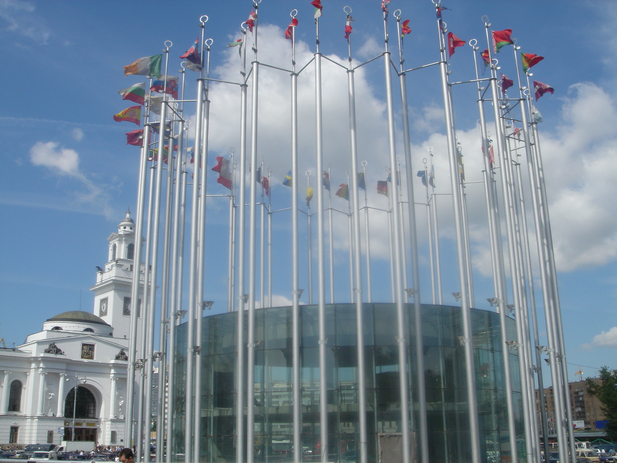 Vele vlaggen bij het Kiev station
