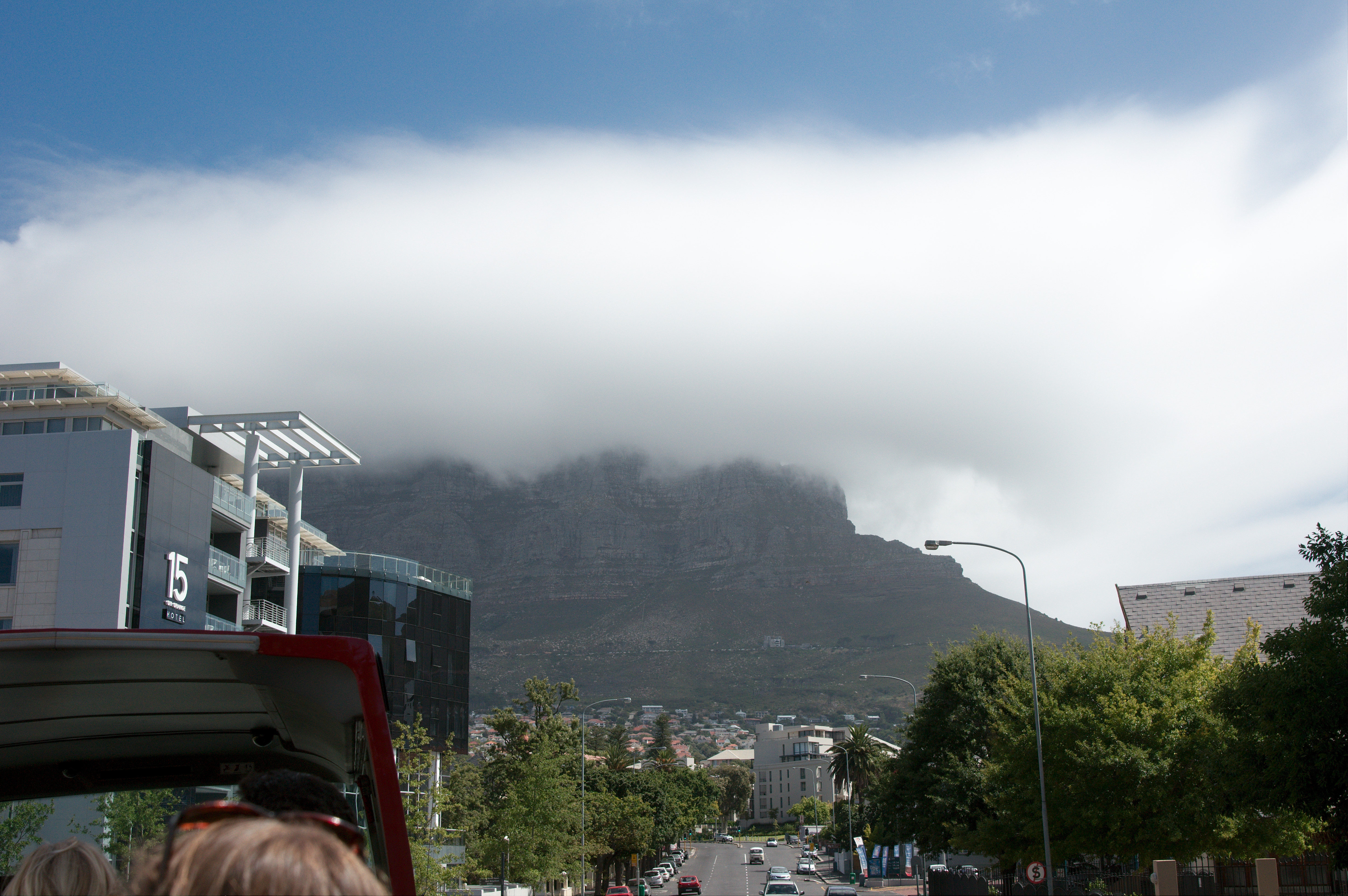 Ik heb te doen met Linda en Meike, de vrouwen die we gisteravond in de kroeg zagen. Hun plan was om vandaag de Tafelberg te bezoeken, maar de berg hangt tot bijna aan de voet in een grote wolk. Dat gaat waarschijnlijk niet door. Ik ben nogmaals erg blij dat we al geweest zijn.