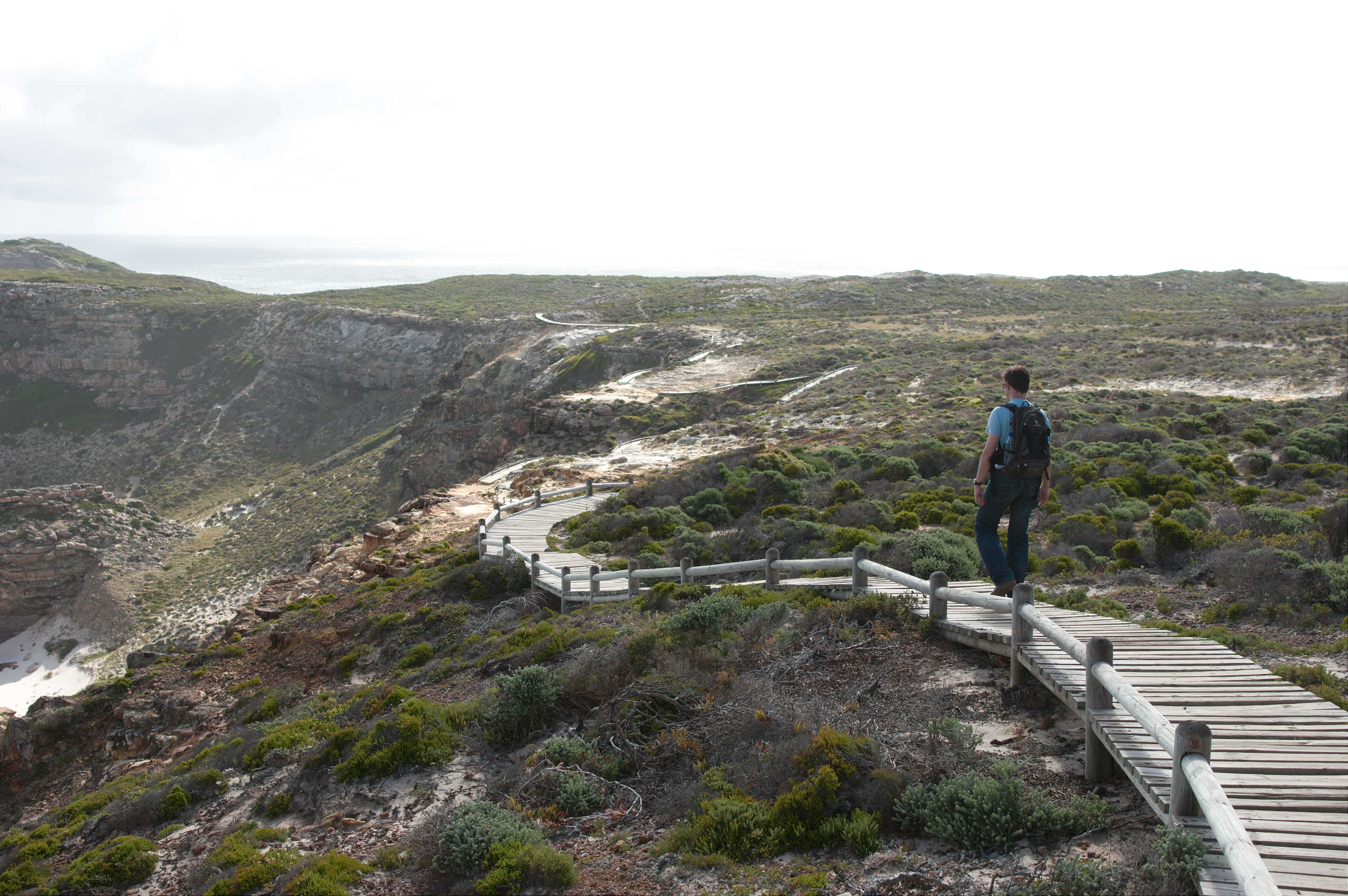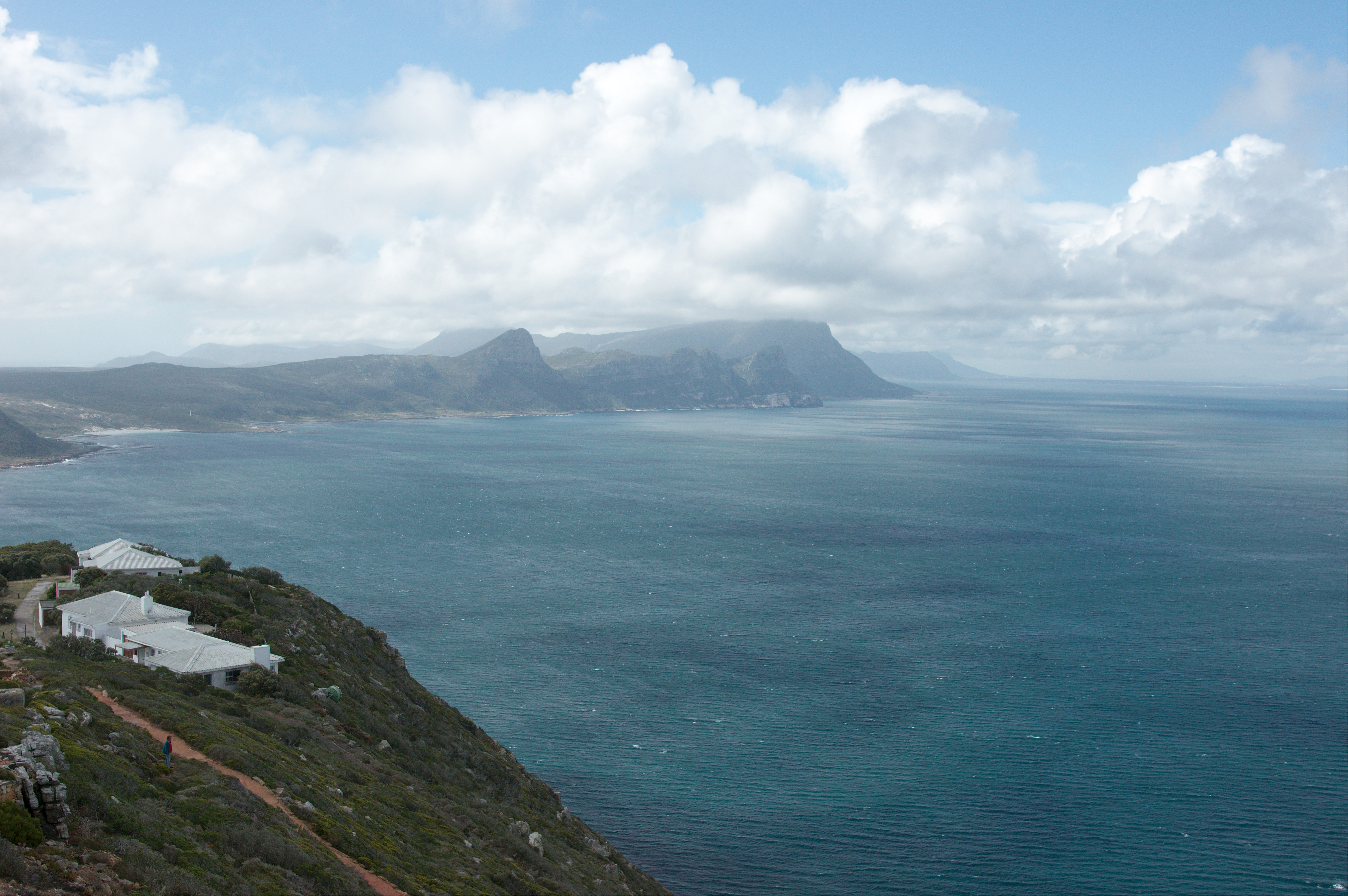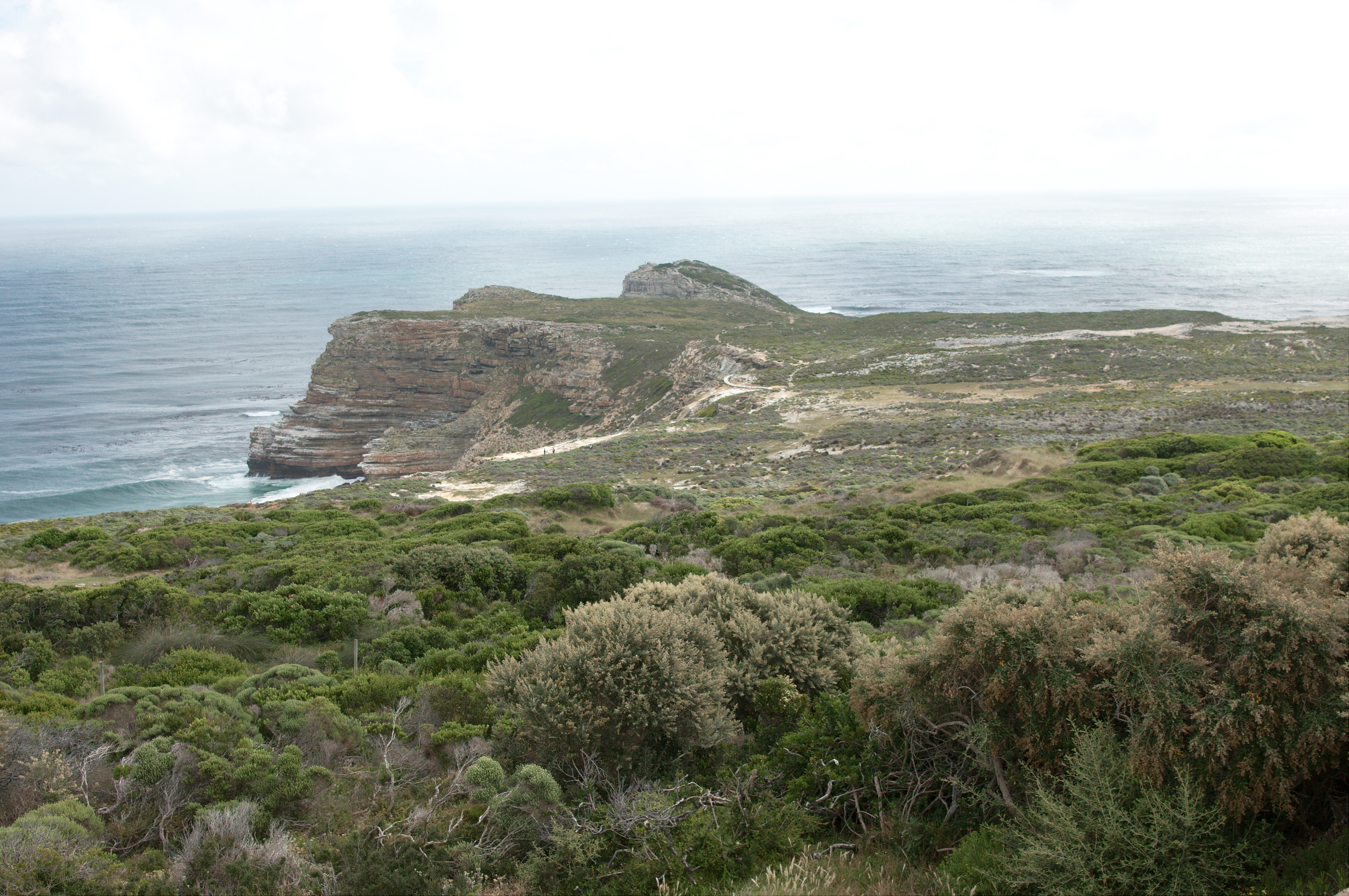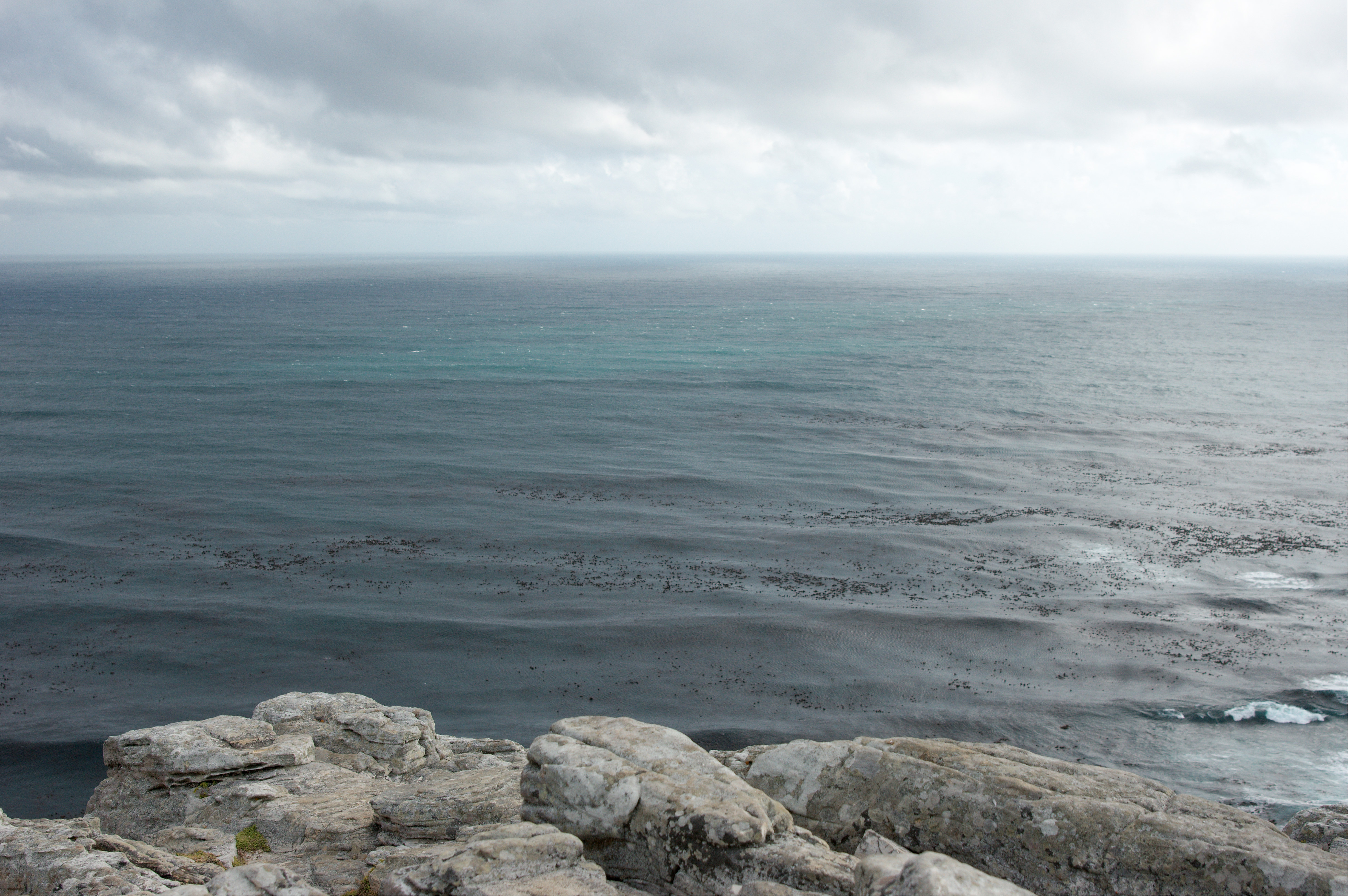 Maar het hoogtepunt van het bezoek was toch wel het bereiken van het zuidelijkste punt, het punt waar de VOC schepen vroeger omheen moesten. Het is een maar een kleine rots iets boven de zeespiegel, het waait er ontiegelijk hard, en je kijkt oneindig ver over de zee. Richting zuiden ligt Antarctica, niet echt in de buurt, de zuidpool is nog dik zesduizend kilometer verderop. Amsterdam ligt 9600 kilometer de andere kant op. Ik had er best een hele tijd kunnen zitten, het doet je toch iets, zo’n speciaal plekje op aarde.