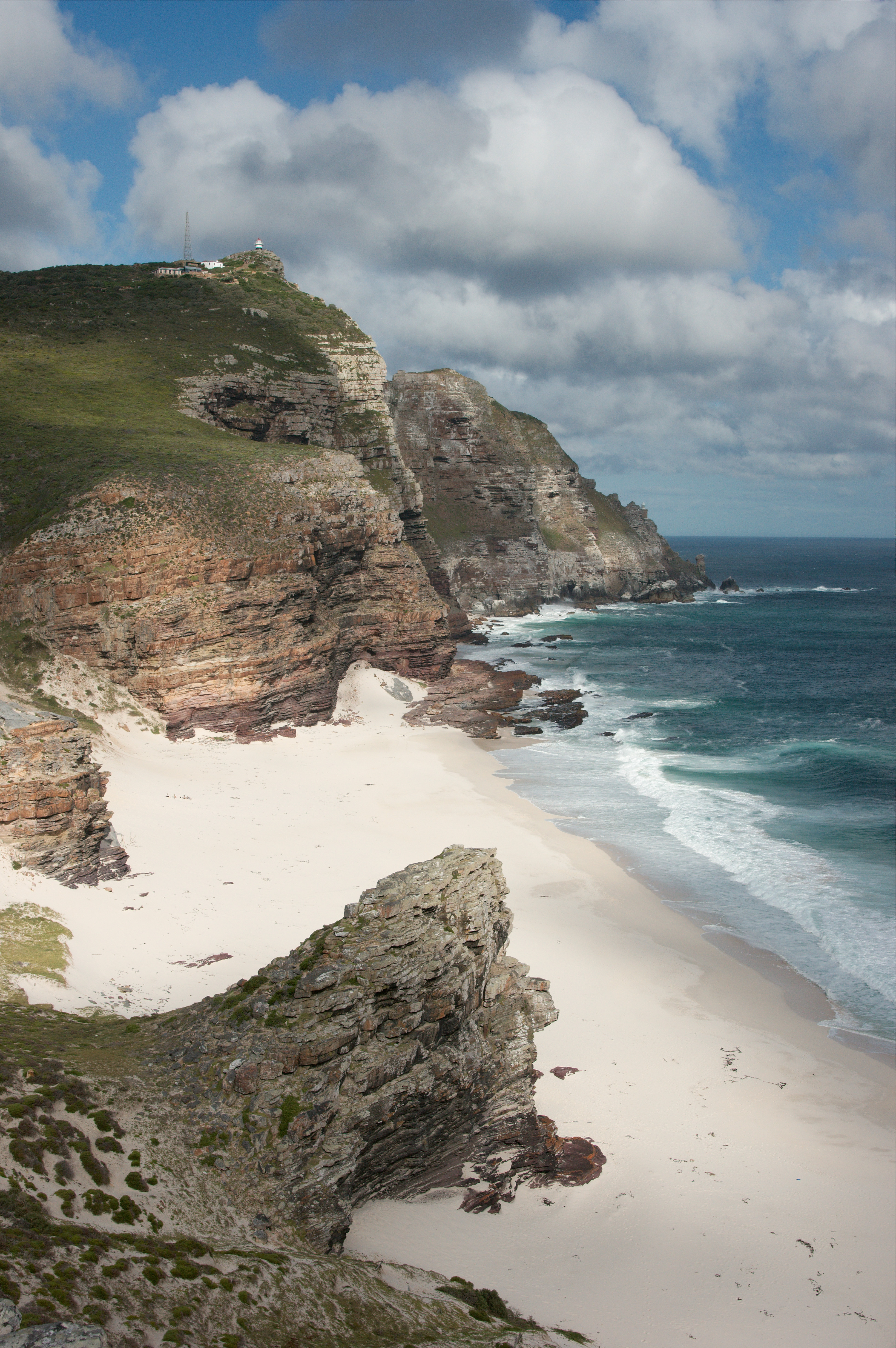 Op het zuidelijkste punt van dit schiereiland is dan het HET punt wat we kennen als Kaap de Goede Hoop. Op een heuvel ernaast staat een vuurtoren, daar zij we naar toe gereden voor zover mogelijk en daarna wandelend omhoog.
