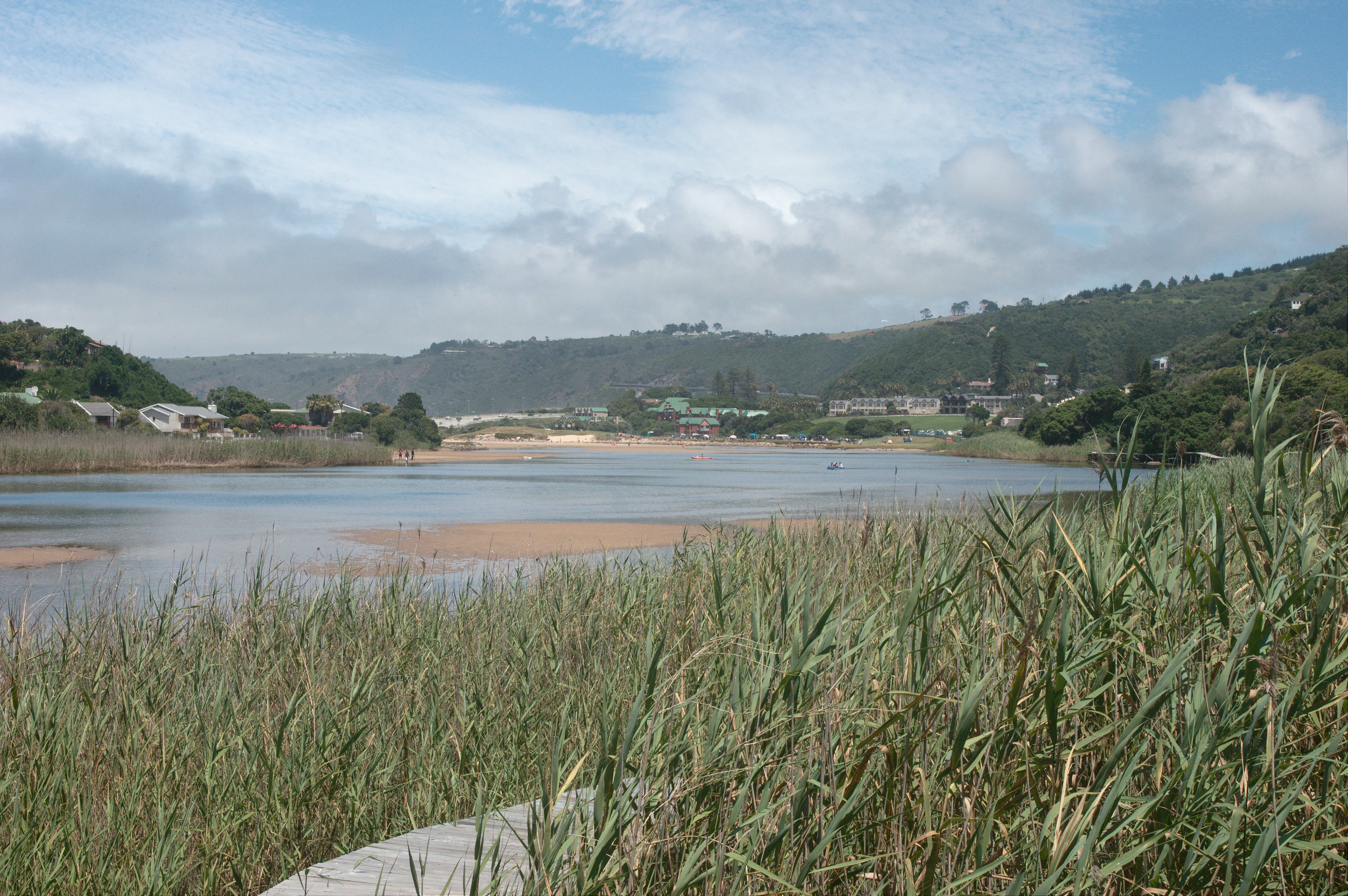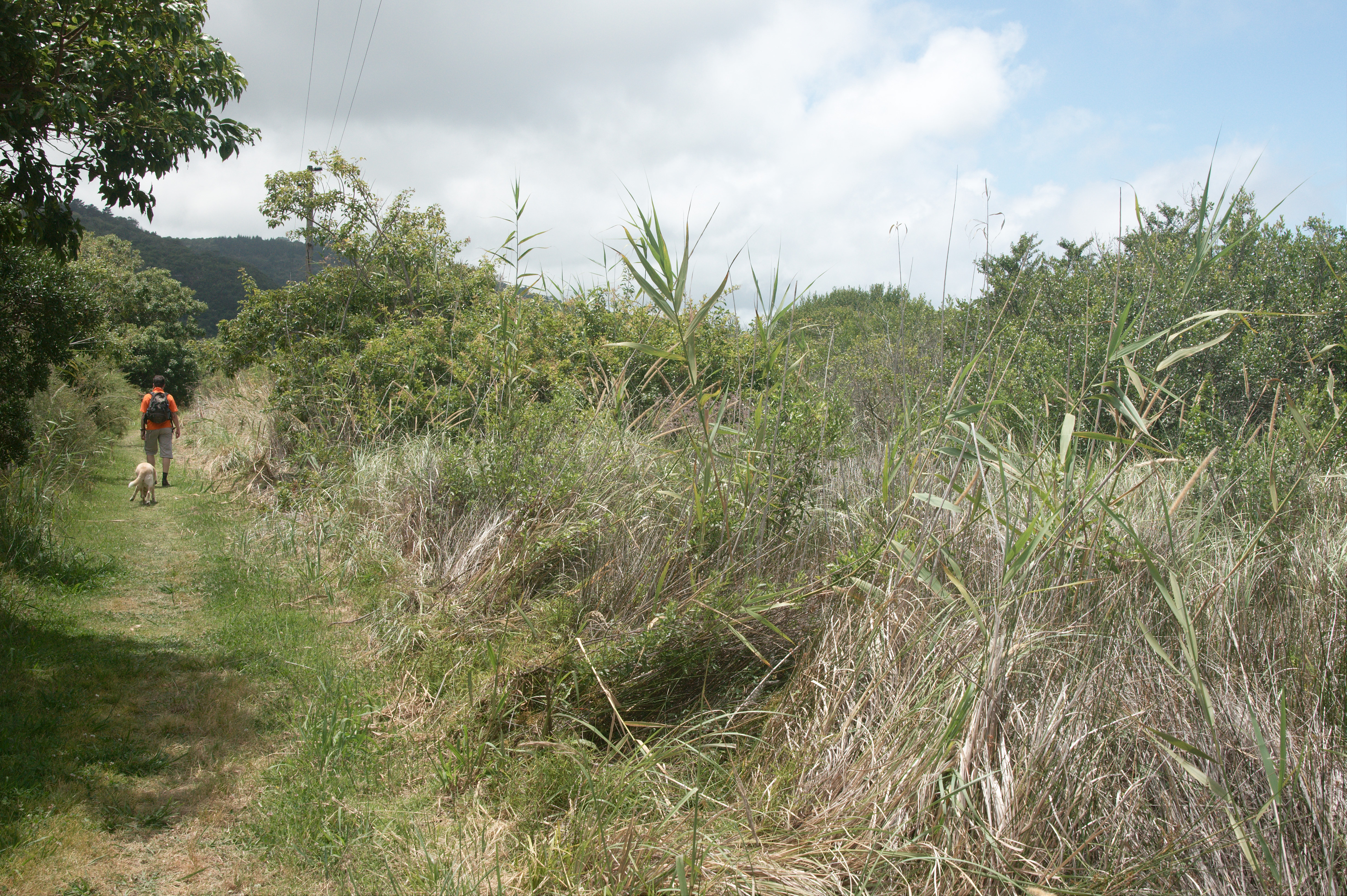 Om half twaalf lopen we de deur uit, de zon schijnt volop. Al snel pikken we de wandelroute op en komen door een rietveld aan de lagune, na een paar kilometer begint dan het echte stuk in de heuvels waar de rivier doorheen loopt. De rivier komt uit in de lagune en komt uit de bergen; enkele kilometers landinwaarts ligt een waterval en daar willen we naar toe.